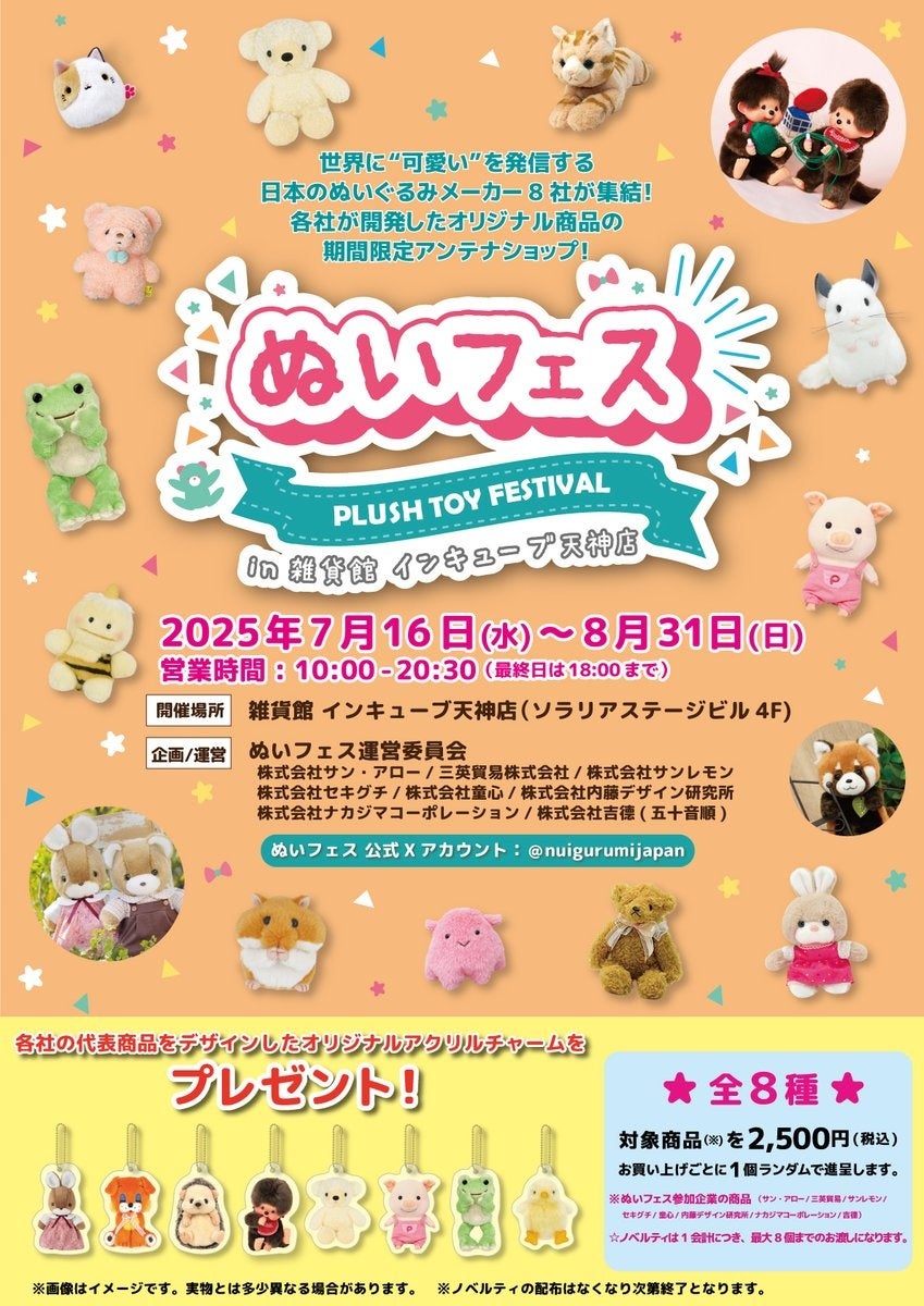 世界に"可愛い"を発信する日本のぬいぐるみメーカー8社が集結する「ぬいフェス in 雑貨館 インキューブ天神店」にて先行発売をします。