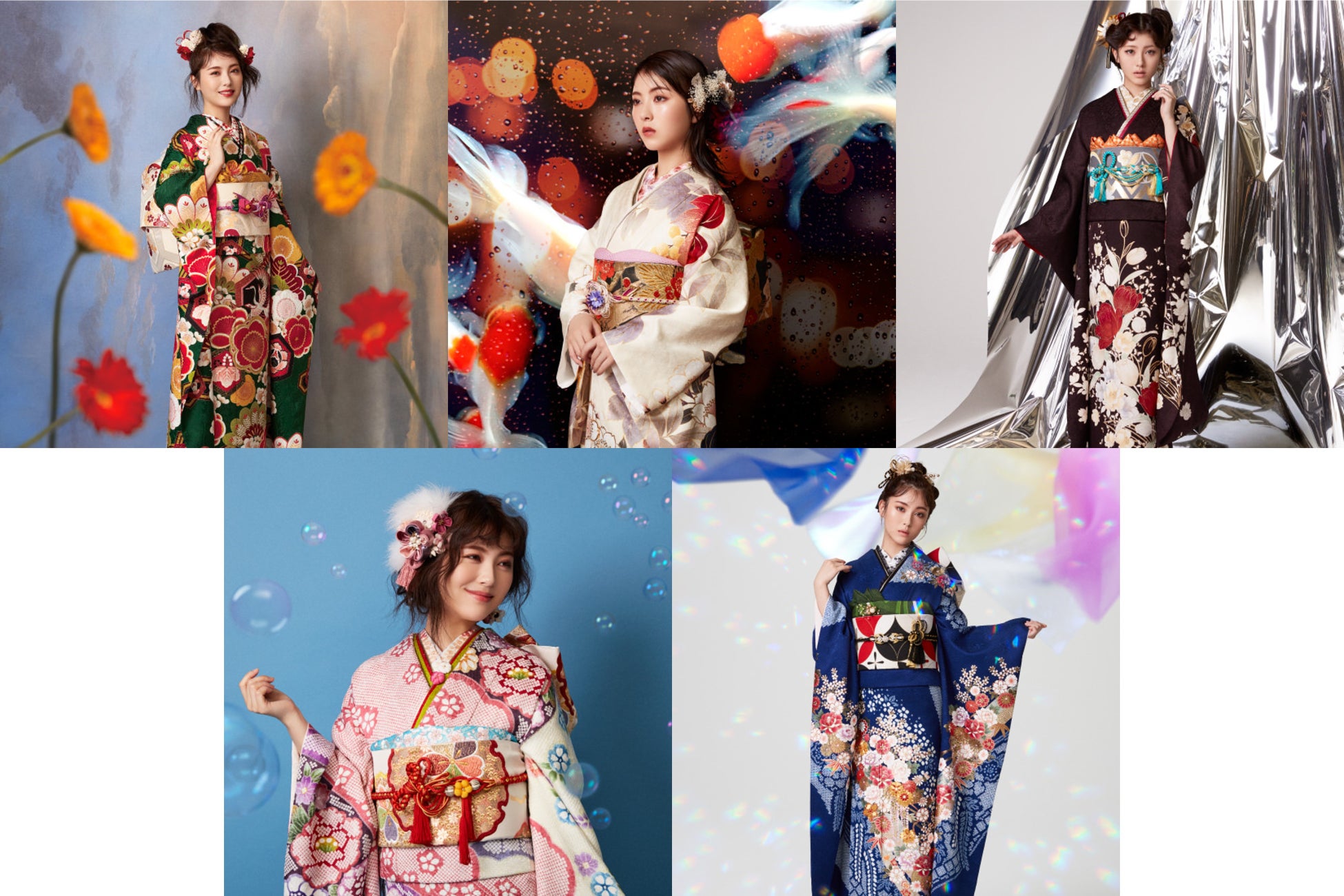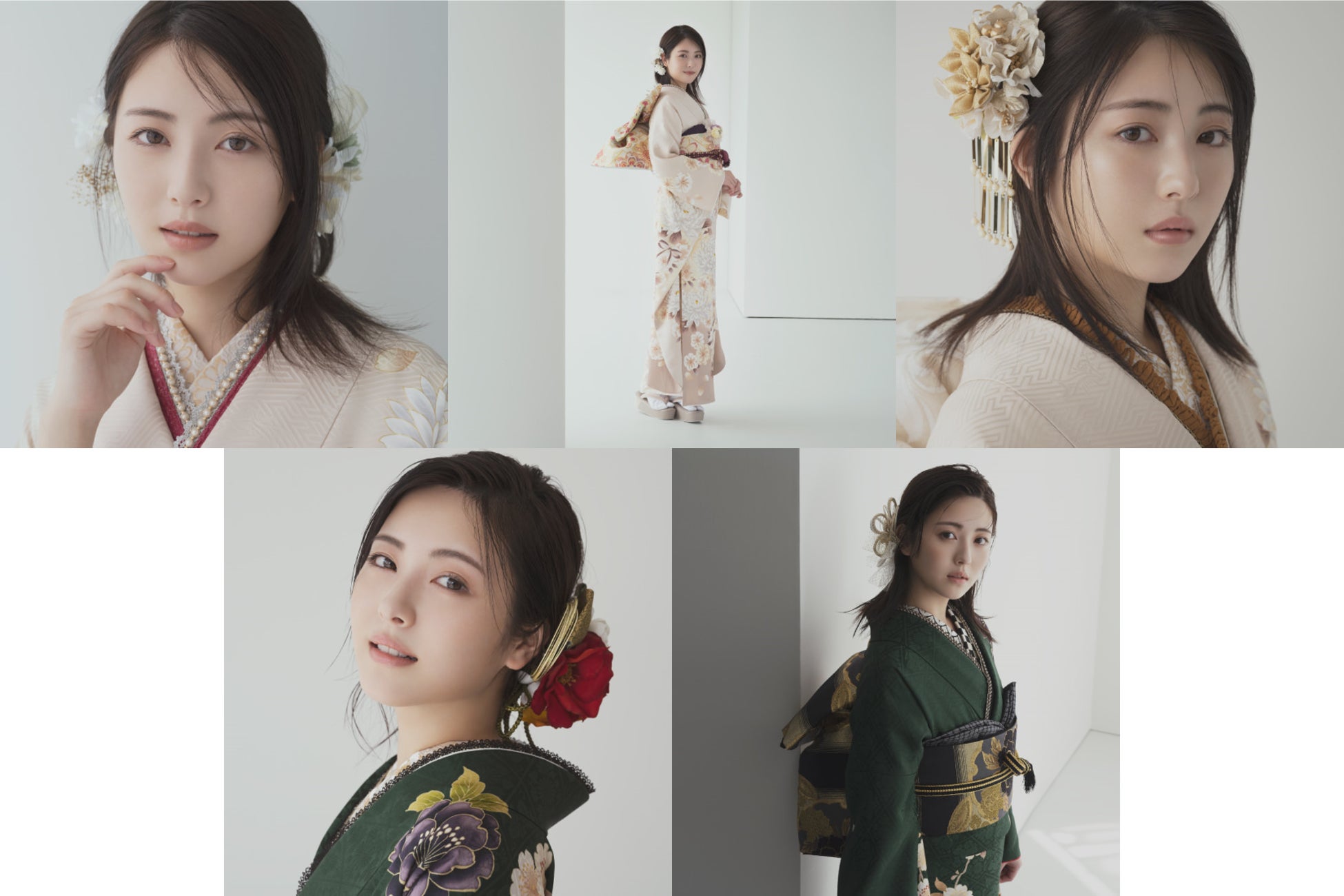 その他、浜辺美波さんに着用いただいた過去の振袖も勢ぞろい。京都きもの友禅が提案する上質な振袖を身にまとった浜辺さんの幅広い着こなしをぜひご覧ください。