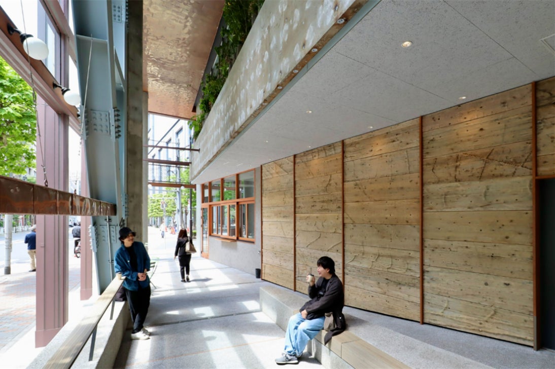 以前にここをふらっと通りかかったことがある。兜町が変わってきていることは知っていたのだが、大きな開発だけでなく、コンパクトなプロジェクトを組み合わせて、街が有機的で生き生きとしていることが感じられた。ここでは、大きな計画にありがちな「街並み」というより「街角」が生まれている。減築し屋外化したスペースには、手触りのあるテクスチャーや物語を感じさせる部品が再利用されている。この小さな時間や歴史の断片の集積によって、人の居場所をつくることに成功しているのではないか。都市とは時間が重層することで厚みを増していくのだという普遍的なアイディアの実現は、やはり多くの人にとって魅力的に映ることはこのプロジェクトが証明してくれている。接木のように街をつくることが私たちの都市でも可能なのだ。