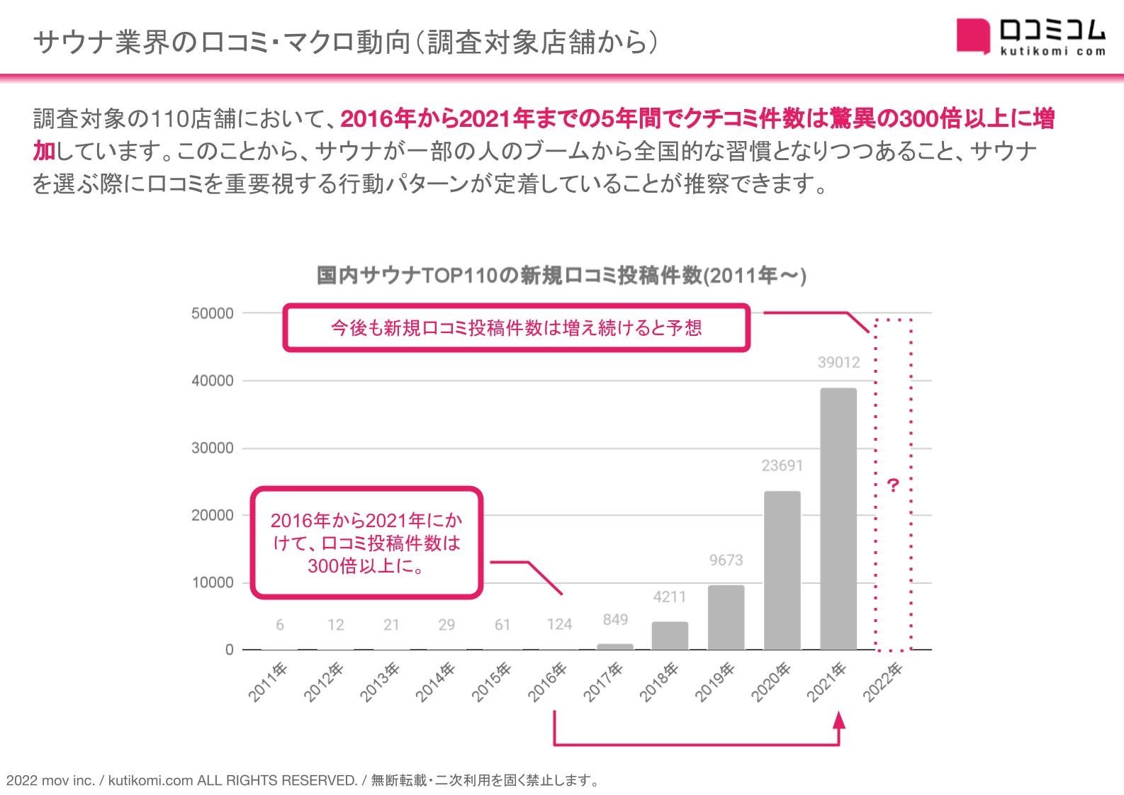 全国のサウナTOP110の口コミを分析!合計口コミ数は過去5年間で300倍に