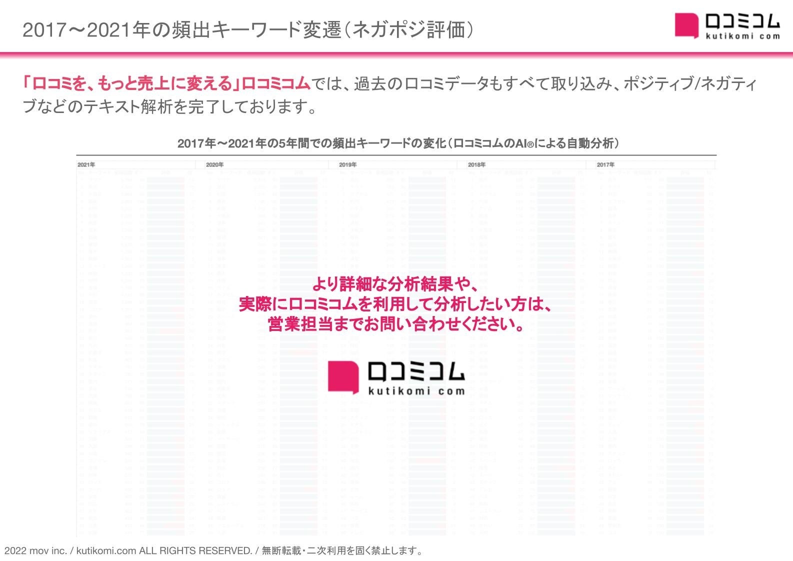 そこで、本レポートは「口コミは読んでみたけど、些末な施策しか出てこない」と悩んでいる担当者の方向けに、口コミを横断して分析することで見えてくる「新しい発見」をご提案します。