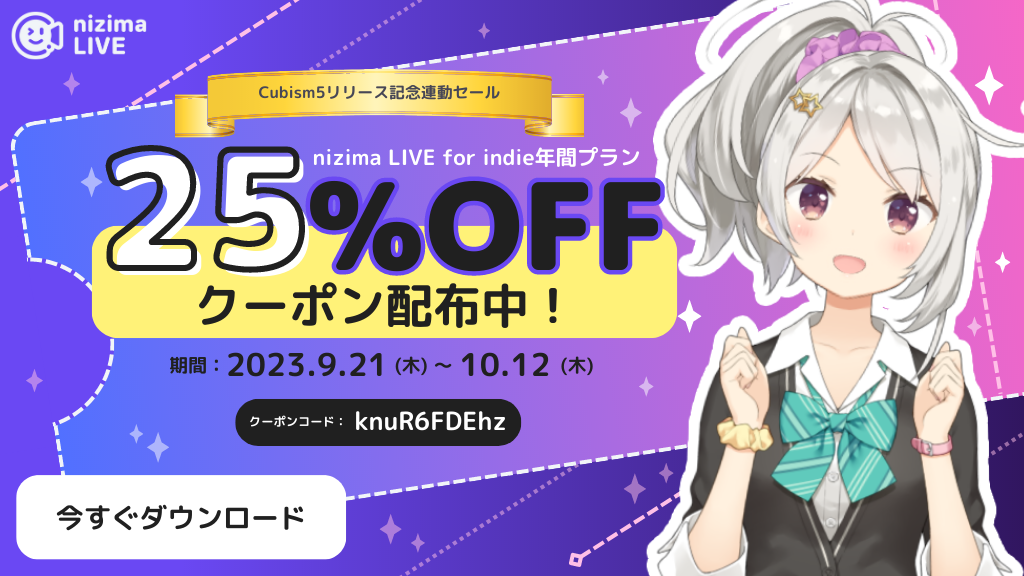 【その2】Cubism 5リリース記念連動セール『nizima LIVE』25%OFFクーポン配布!