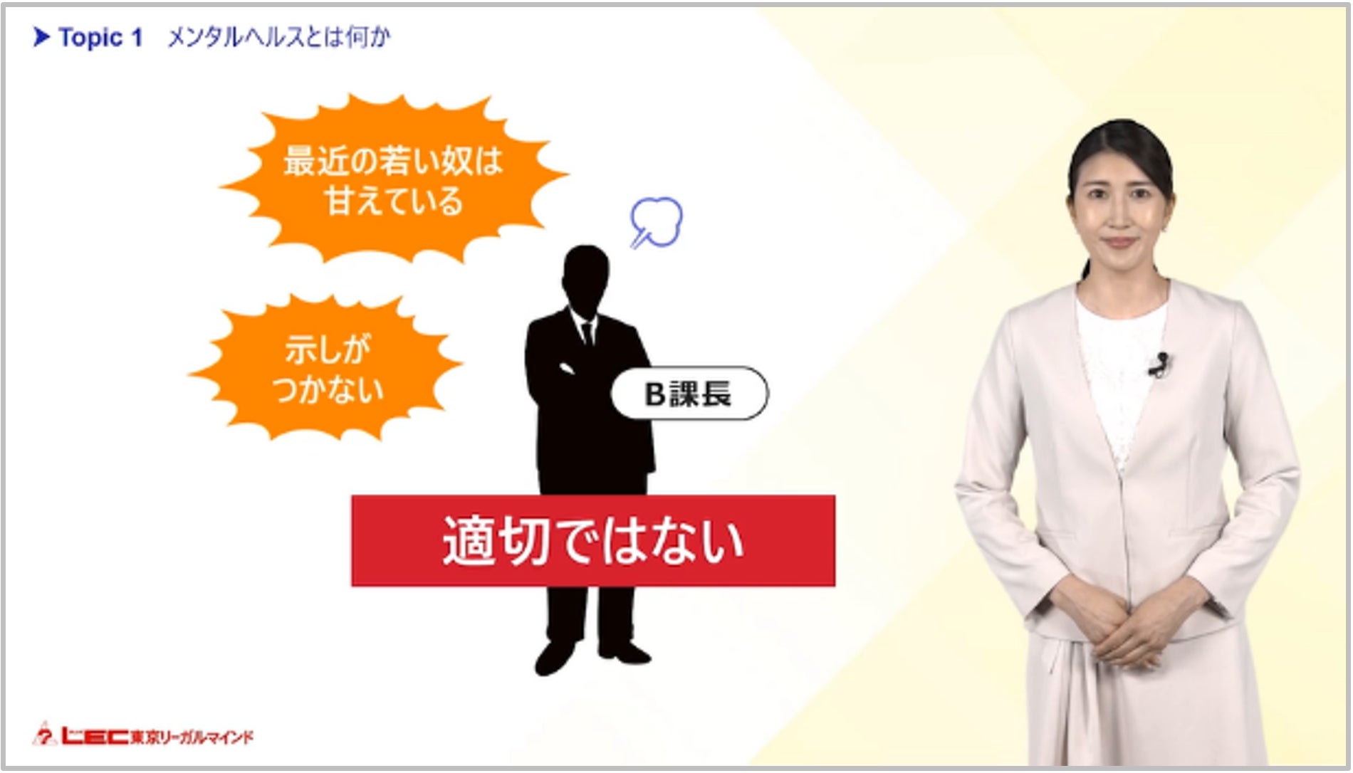 今回の動画コンテンツは、法務・コンプライアンス・リスク管理教育など難易度の高い専門分野において強みをもつLEC東京リーガルマインドが保有するコンテンツ資産をもとに、企業向け映像教材制作で豊富な実績を誇るサイコム・ブレインズの企画・制作ノウハウを生かして、短時間で学べるわかりやすい動画コンテンツとして開発しております。