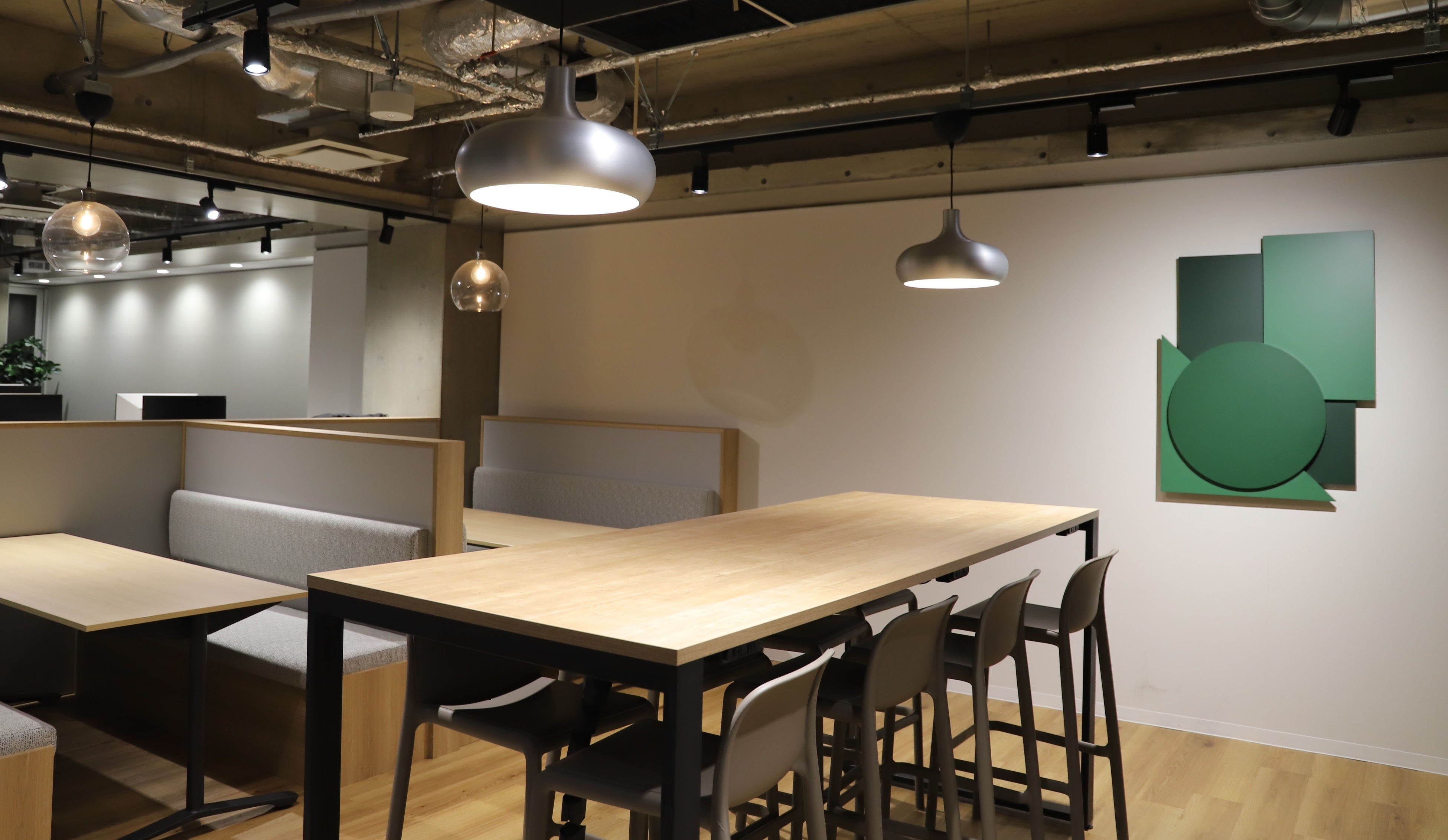 昨年 9 月に本社を移転する際も、デザインを通してキカガクのミッション・バリューを社内に浸透させることを意識しました。会議室に各バリューの名前を付けて、それぞれテーマに合わせた壁面デザインを配置しました。各バリューのデザインをはじめ、柑橘系の香りをディフューザーで充満させ、心地よい音楽を聞けるよう天井にスピーカーを設置し、集中力の高まるグリーンをあしらうなど、五感を刺激してバリューを存分に発揮できるように、環境整備を進めました。