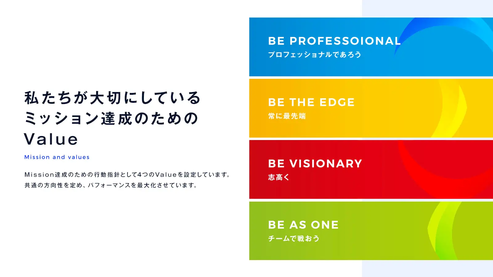 ■ ミッションを達成する施策: 4 つのバリューについて
