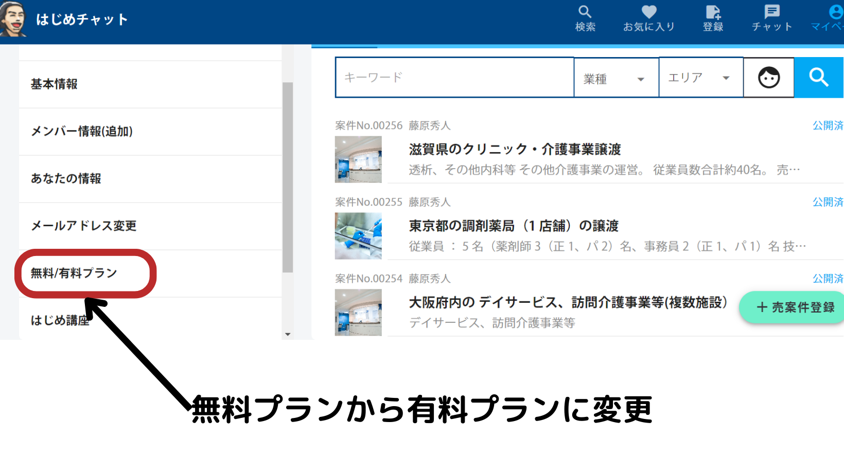 有料プランは、買い手とアドバイザーのみです。月額8,800円でチャット使い放題です。