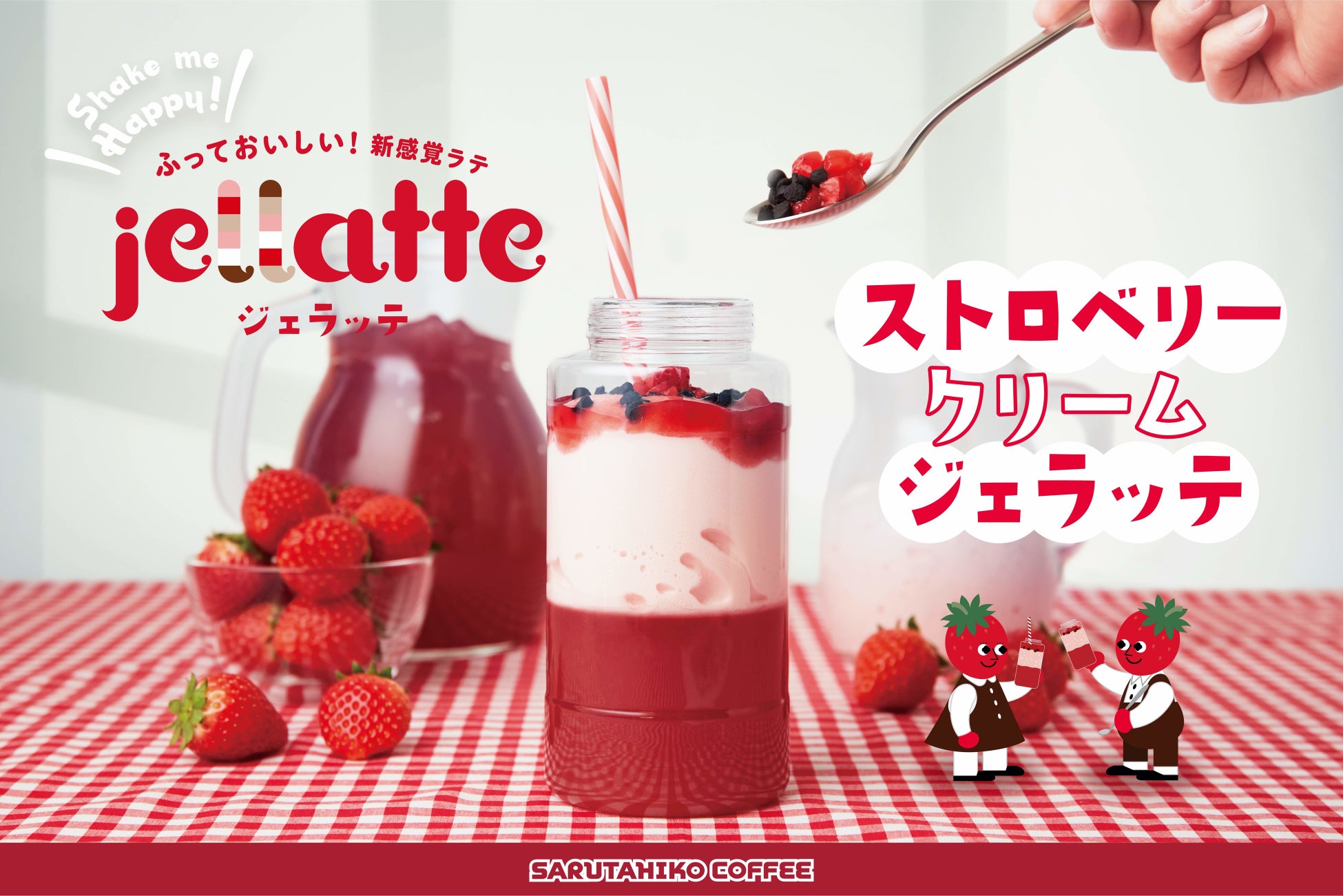 「jellatte(ジェラッテ)」は、コーヒーやフルーツ、ゼリー、ミルクなどが層になった状態から、振って混ぜながら楽しむ新感覚のスイーツドリンクです。振る回数や強弱の加減で、ゼリーの粒の大きさや素材の混ざり具合を調整し、お好みの食感に仕上げる事ができます。「jellatte(ジェラッテ)」という名称は、jelly(ゼリー)とlatte(ラテ)を掛け合わせた造語で、また「ジェラシーを感じるほど美味しい」というユーモアが込められています。
