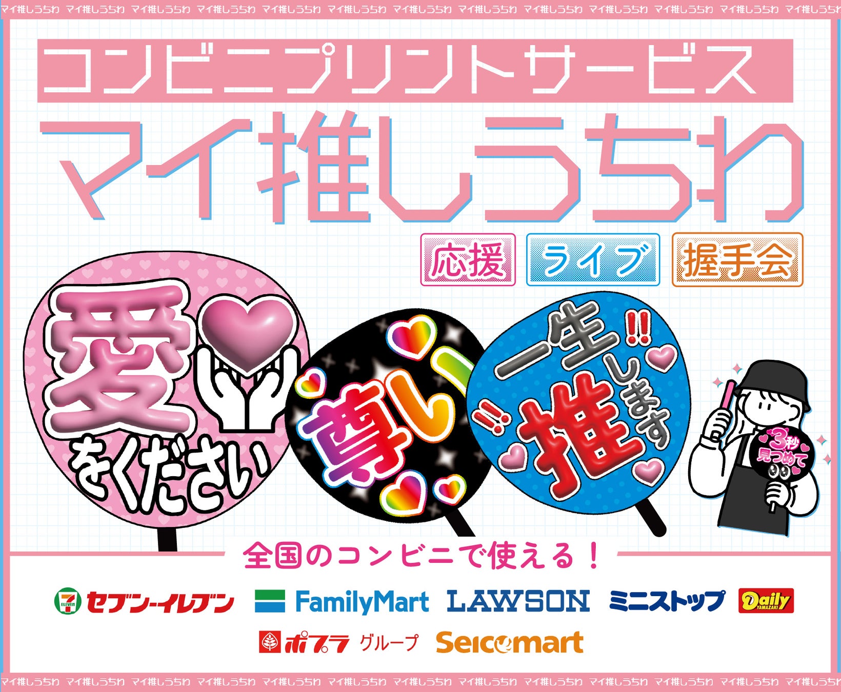 スマホやパソコンから簡単にデザインを選択して、 最寄りのコンビニでいつでもプリントできる『マイ推しうちわ』をぜひご活用ください。