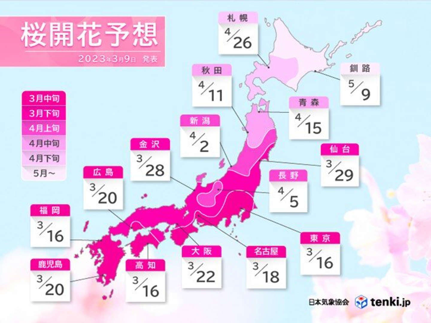 桜月とも呼ばれる3月に入り少しずつ暖かい日が増え、春の階段を一気に駆け上がっているかのようです。日本気象協会は、2023年桜開花予想(第4回)を発表し、福岡では3月16日頃と予想しました。3月13日からはマスクの着用緩和もあり、今年はご家族・ご友人・大切な仲間揃ってのお花見を計画している人も多いのではないでしょうか。