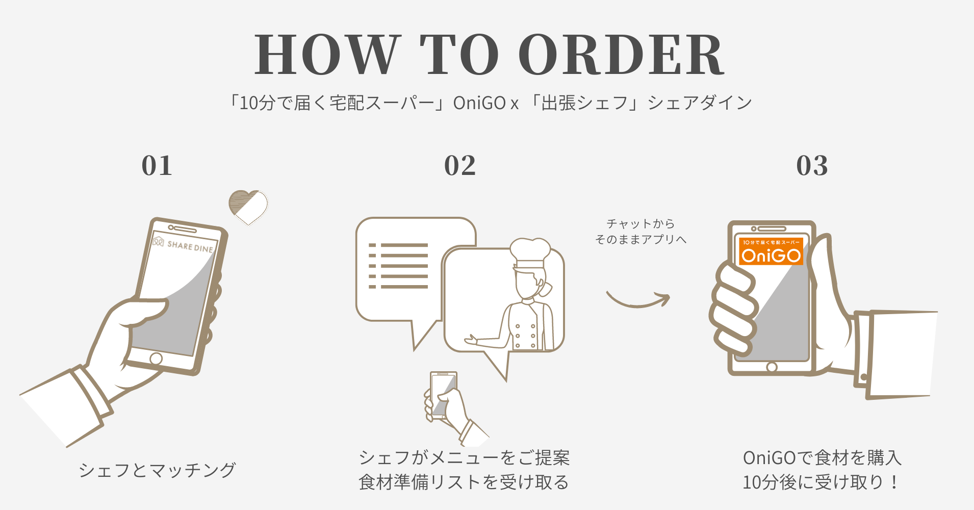 - 出張シェフ「シェアダイン」 ⅹ 10分で届く宅配スーパー「OniGO」サービス連携の背景