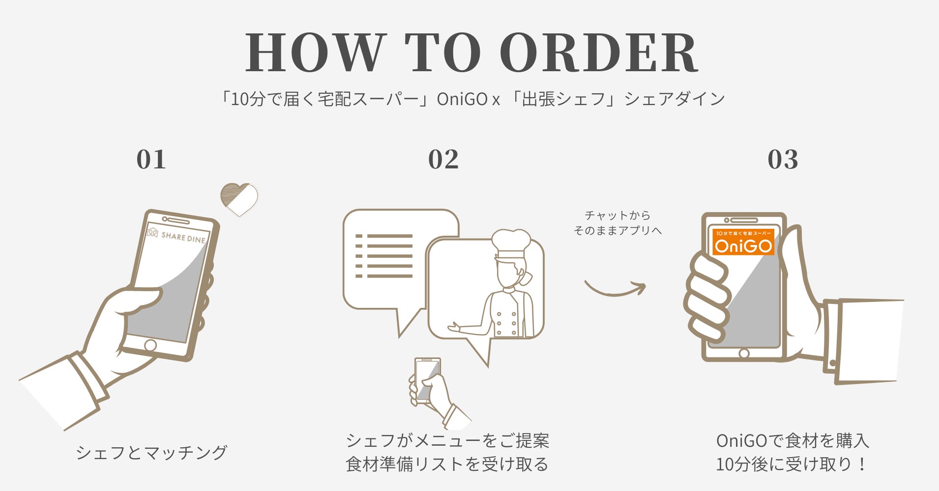 出張シェフ「シェアダイン」 x 10分で届く宅配スーパー「OniGO」サービス連携開始