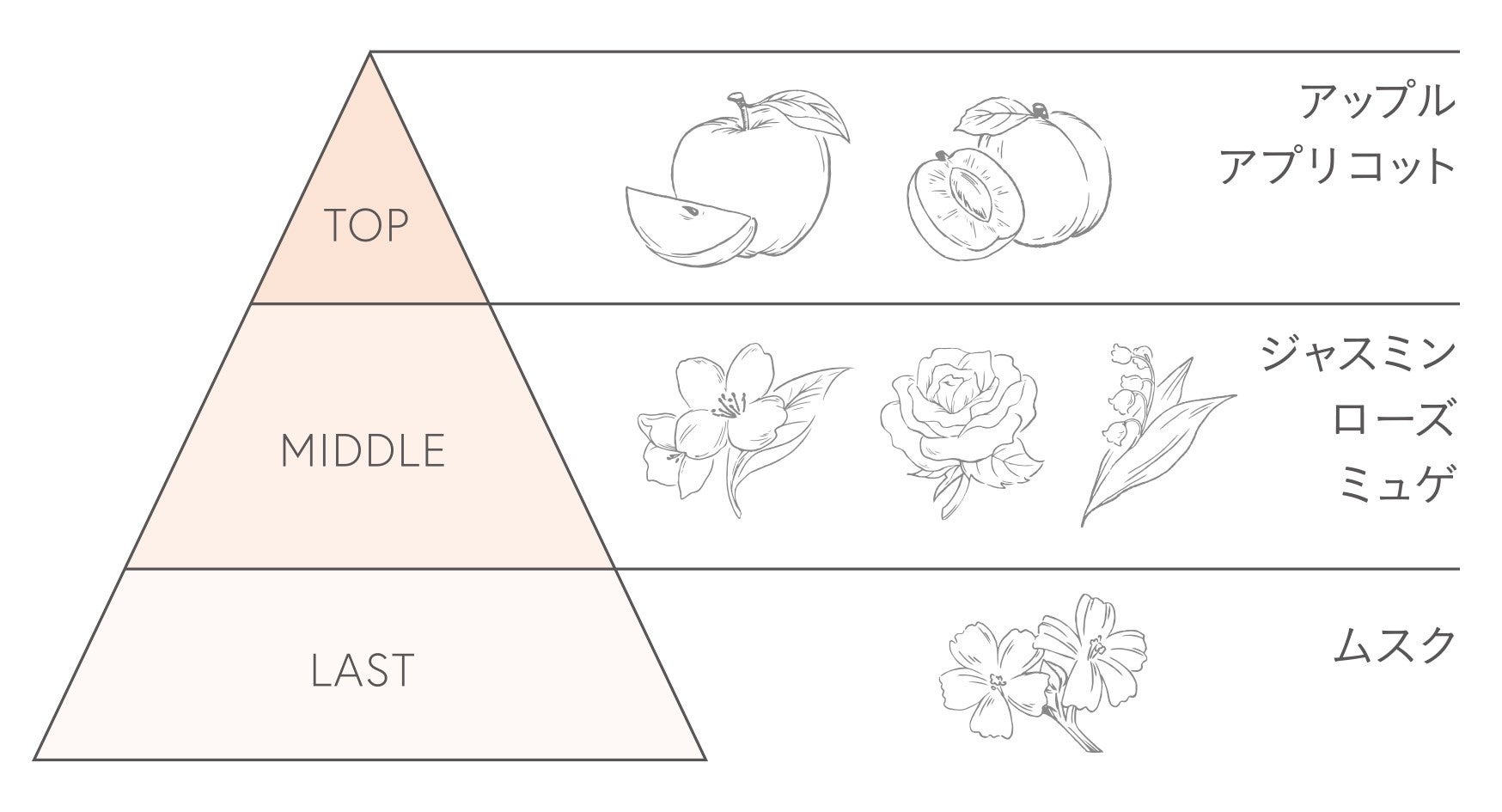 アイロンで熱をかけても香りが飛びにくい、ムスク・ジャスミン・ローズの組み合わせで、アイロン後も香りが軽やかに続いて楽しめるよう、調香しています。