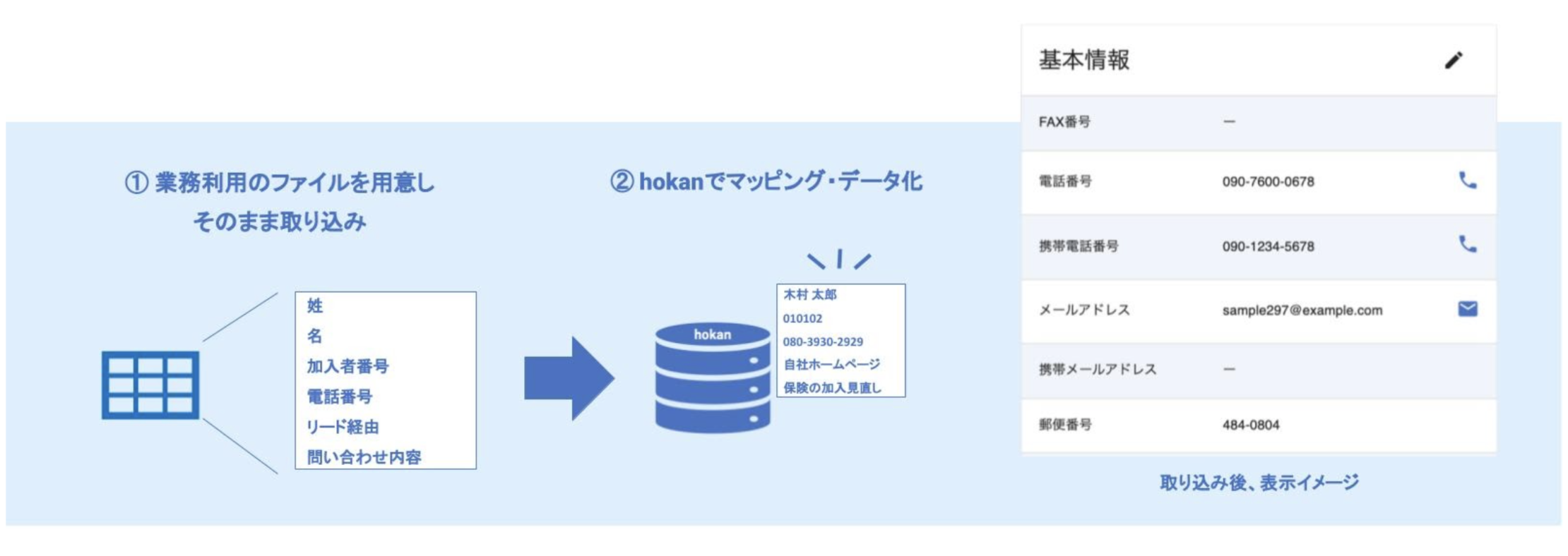 本機能、「マジックインポート」の提供により、顧客情報を強固なセキュリティで保護されたhokan上で一元管理可能となり、データ集約・加工作業を一つのシステム上で行うことができることで、更なる経営効率の向上が可能となります。