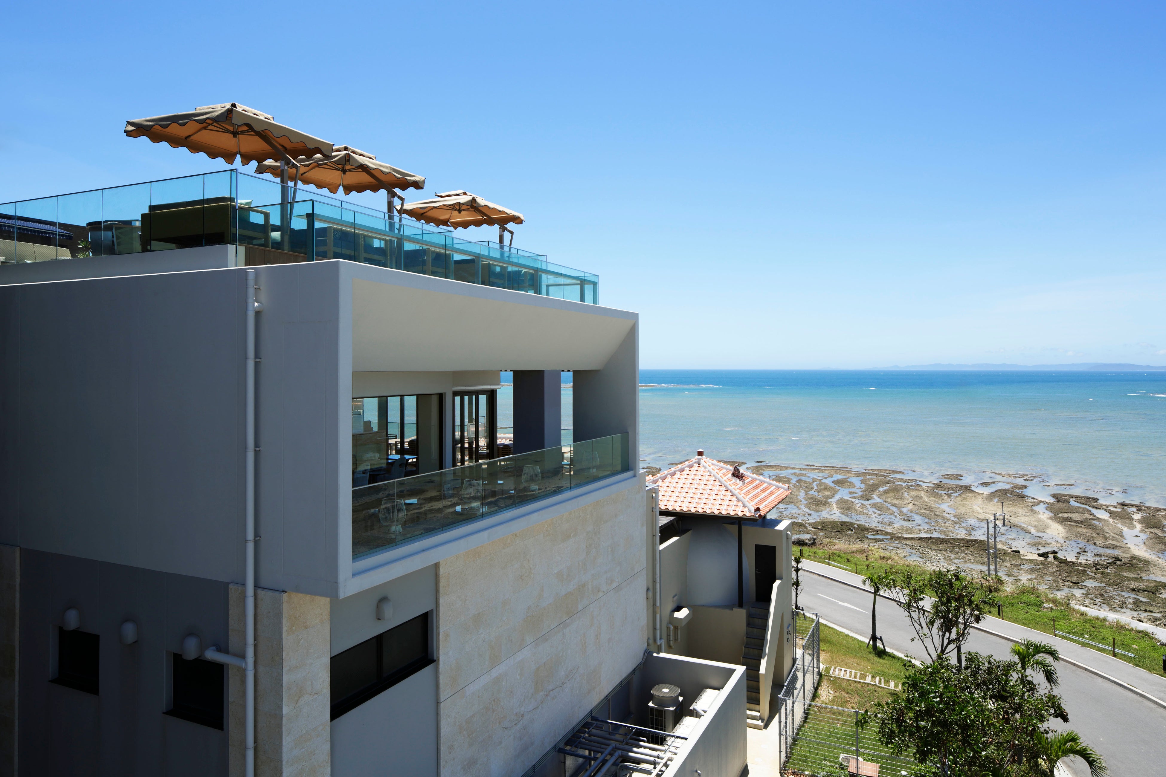 屋上に位置するルーフトップバーからは、300度以上広がる、沖縄の壮大な海の景色をお楽しみいただけます。