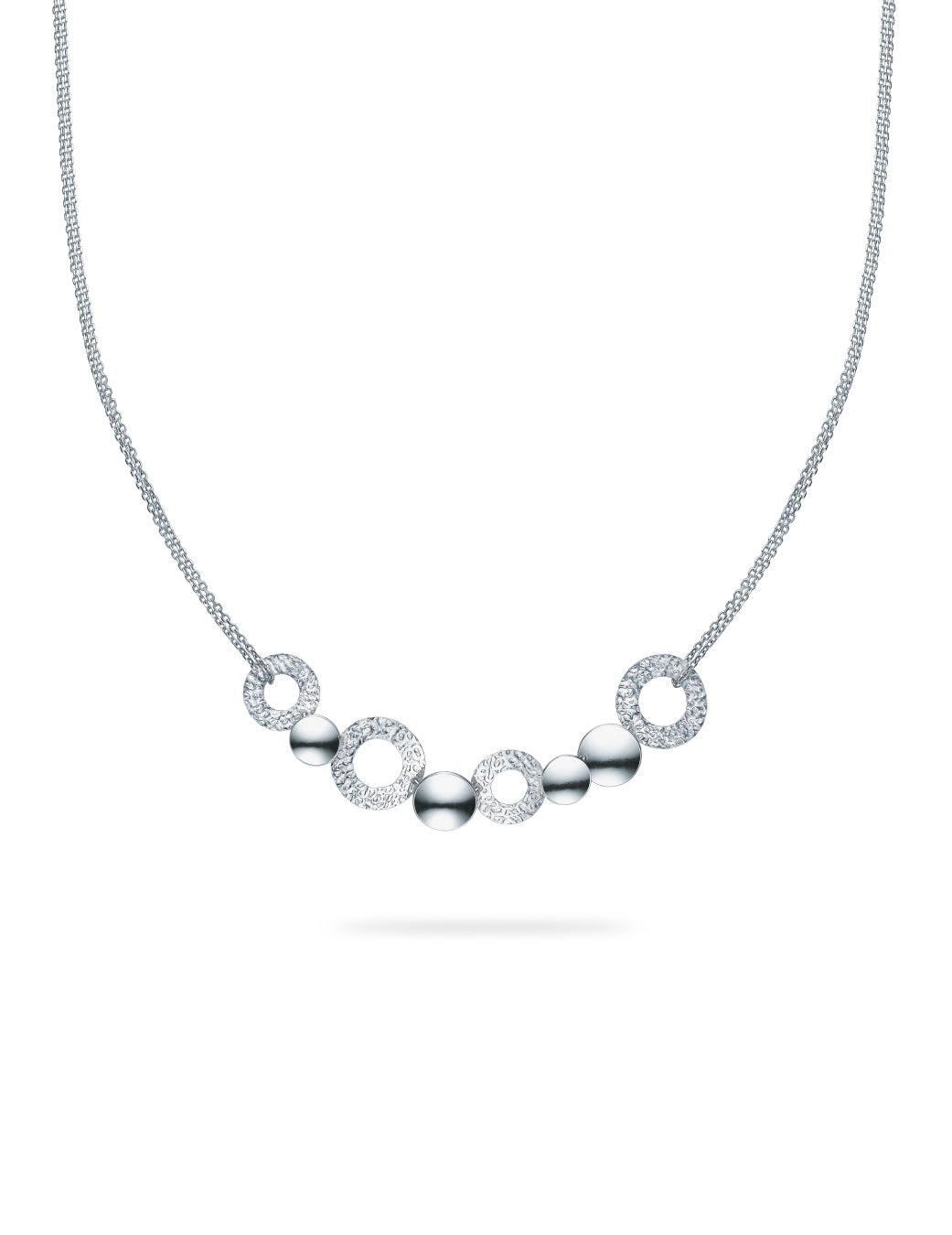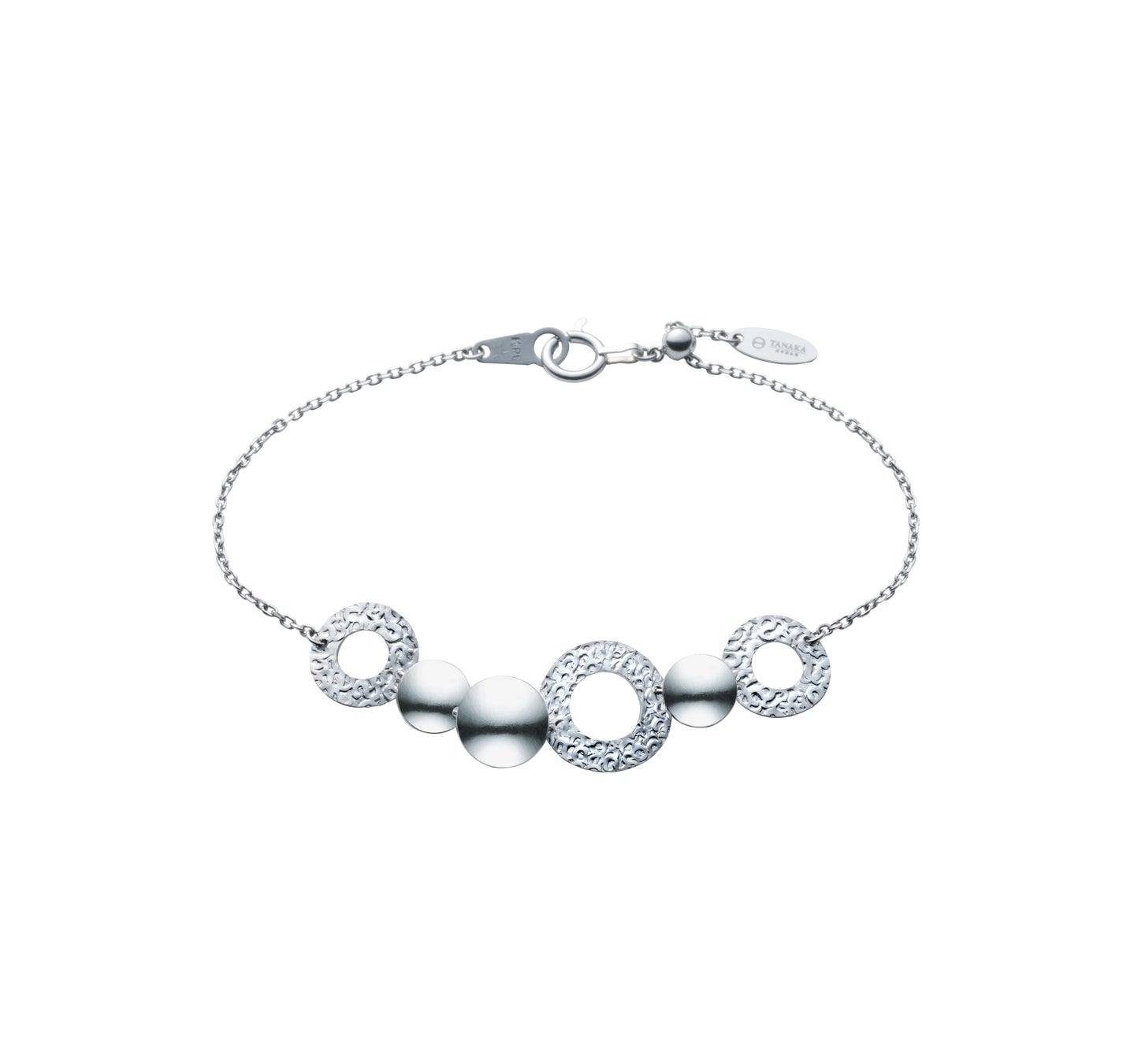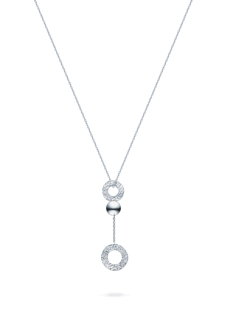 ネックレスは縦のラインのトップが揺れ洗練された印象の最長約45cmのタイプと、ネックレスセンターにサークルパーツを並べ、ボリューム感のある最長約43cmのタイプの2 種類があります。ブレスレットは連なる純プラチナのサークルパーツが手首にきらめき、上質な輝きを演出します。ブレスレットは、サイズの調節も可能です。純プラチナ製のリングはテクスチャーと鏡面のパーツをひとつずつ組み合わせたシンプルなデザインです。フリーサイズなので、気分や装いに合わせて好きな指につけることができます。存在感のあるサークルモチーフのピアスは、大きなサークルのパーツが両面リバーシブル仕様になっています。小さなサークルパーツのみ、大きなサークルパーツの2通りと、合わせて3wayで楽しむことができ、顔回りを純プラチナの上質な輝きで華やかに演出します。