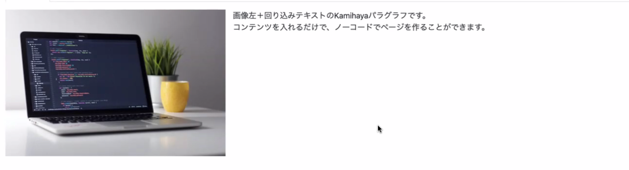 Kamihayaパラグラフとはページ制作の際に、HTMLコードを書かずに、レイアウトボタンから