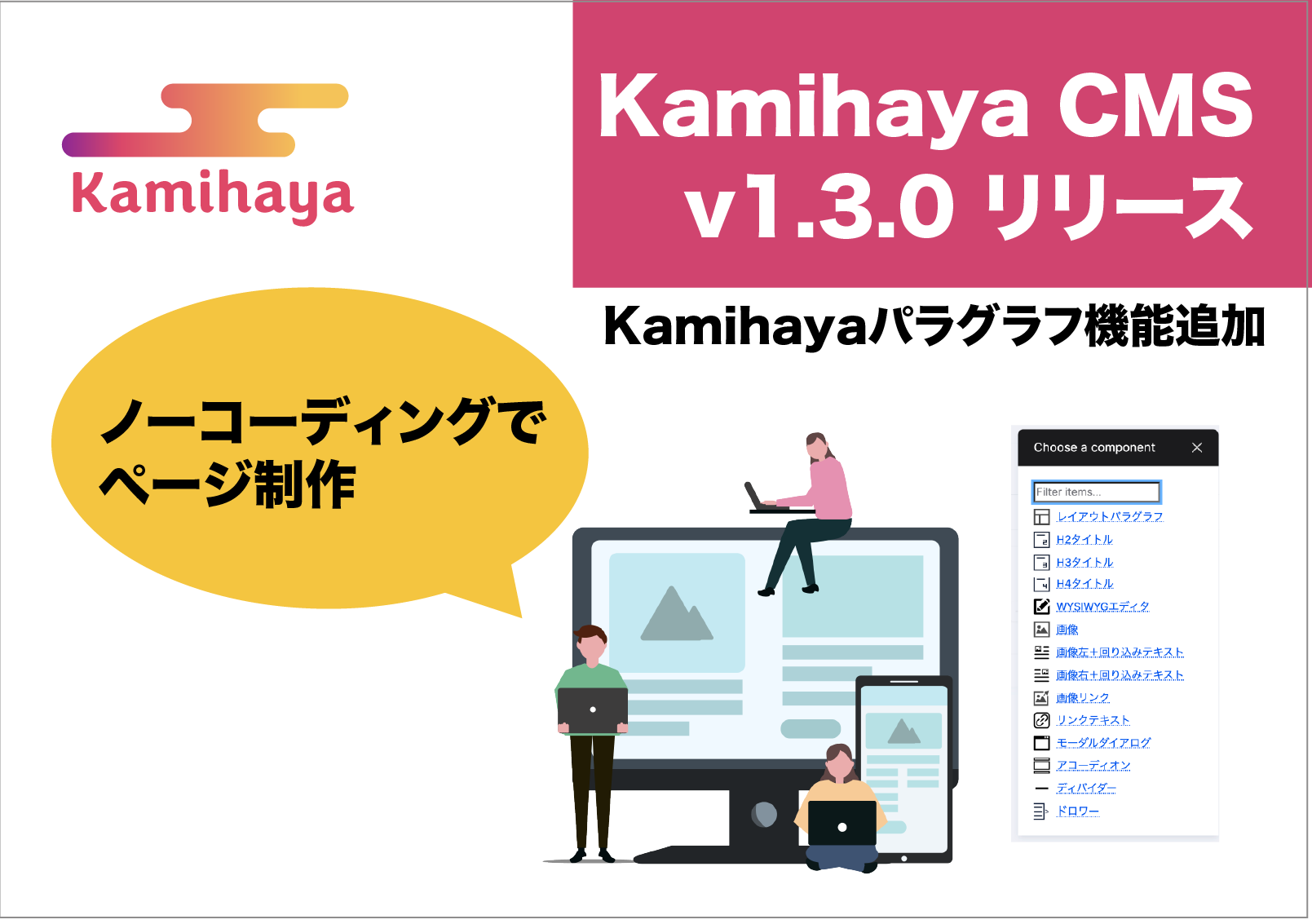 ノーコーディングでページ制作を進められるKamihayaパラグラフを実装したKamihayaCMS v1.3.0をリリース