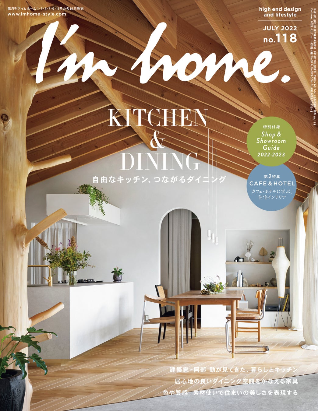 インテリア誌「I'm home.(アイムホーム) no.118 2022 JULY 自由なキッチン、つながるダイニング/カフェ・ホテルに学ぶ、住宅インテリア」が発売