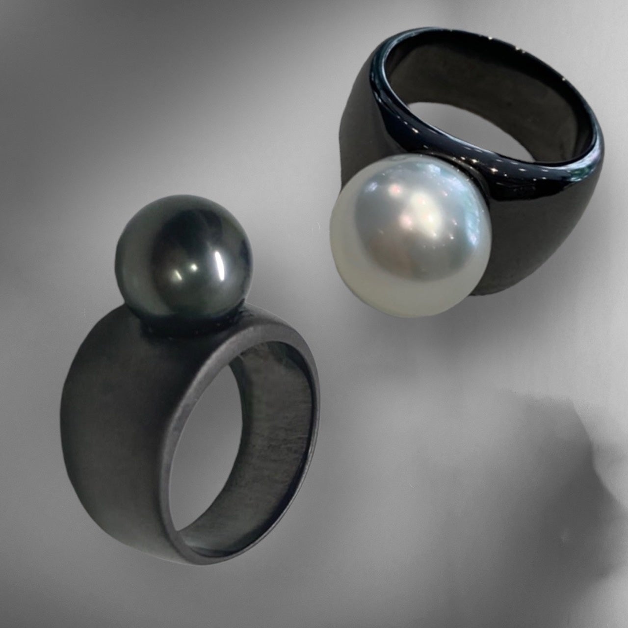 ボリュームたっぷりのコロンとしたフォルムのリング台に、存在感のある10~12㎜のまあるい大珠真珠を中心から少しハズして配置することで個性ある表現に。上質な大珠パールの輝きが、お手元を可憐に彩ります。