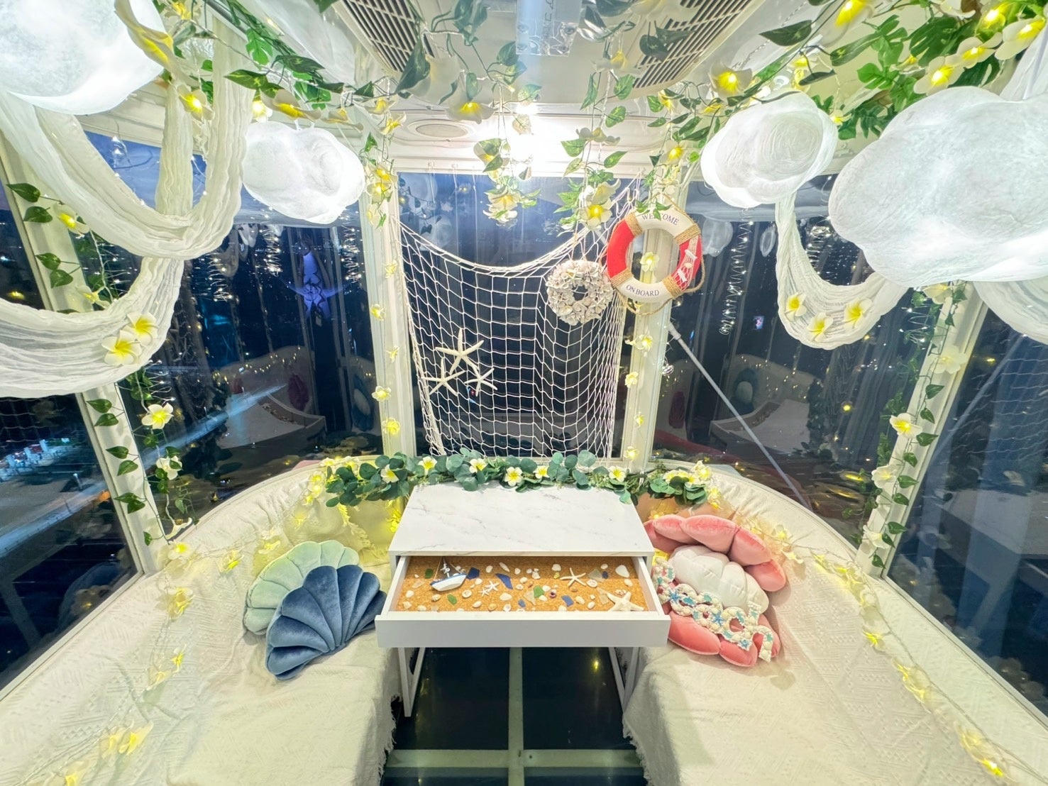 プルメリアの髪飾りもプレゼントしており、涼しげで可愛いゴンドラ内装と相性ばっちり。