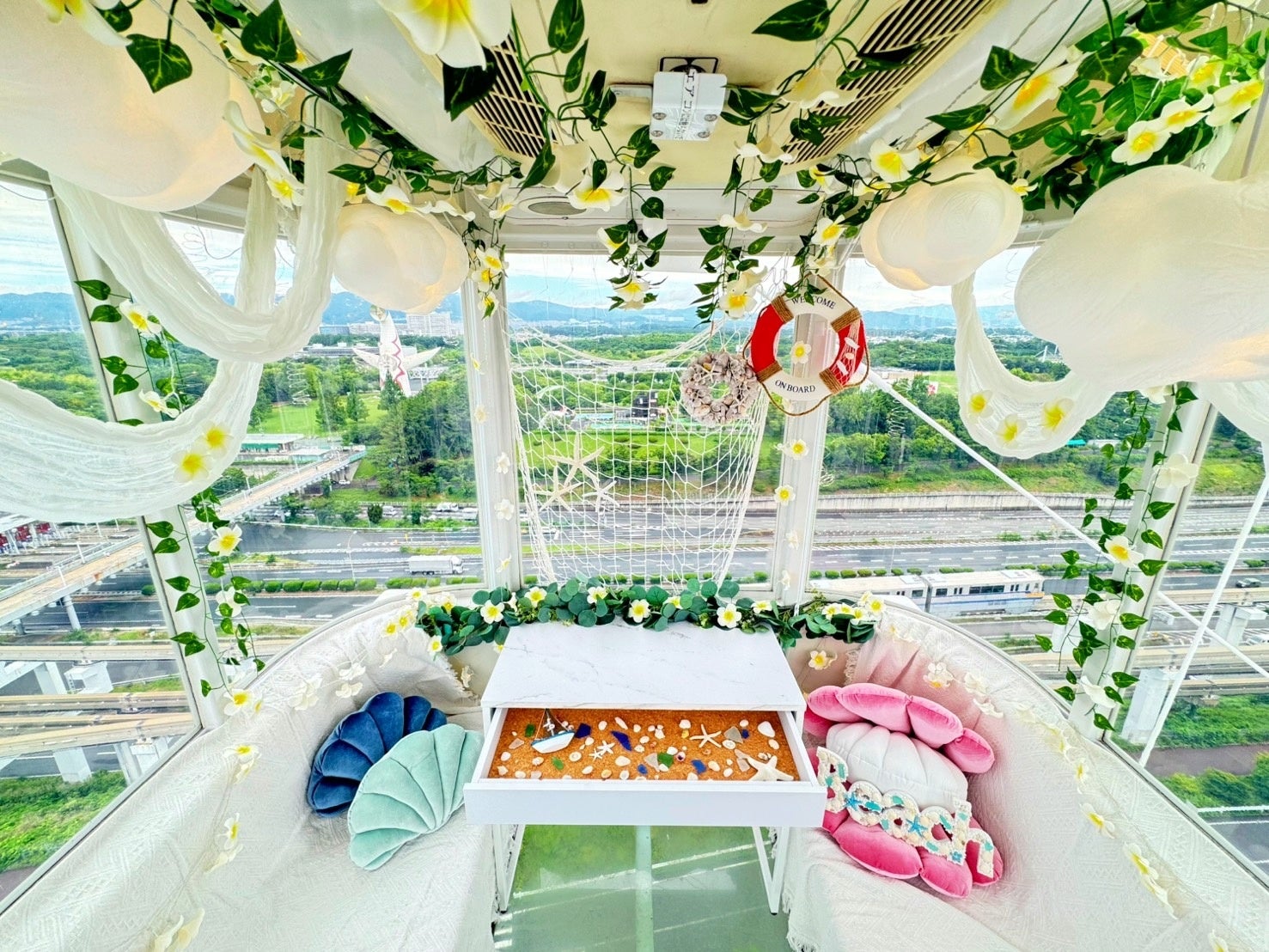 季節ごとに変化する“カフェ観覧車”シリーズの一環として、「夏」テーマの特別内装と、シーズン限定のドリンクやかき氷をセットにした特別体験を提供。