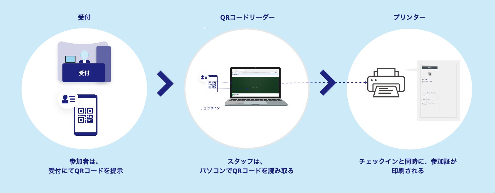 運営側は印刷持参の事前アナウンスや当日の確認・開催後の参加者データの突合などの運営コストが大幅に削減でき、参加者にはよりスムーズな受付体験をご提供できるようになります。