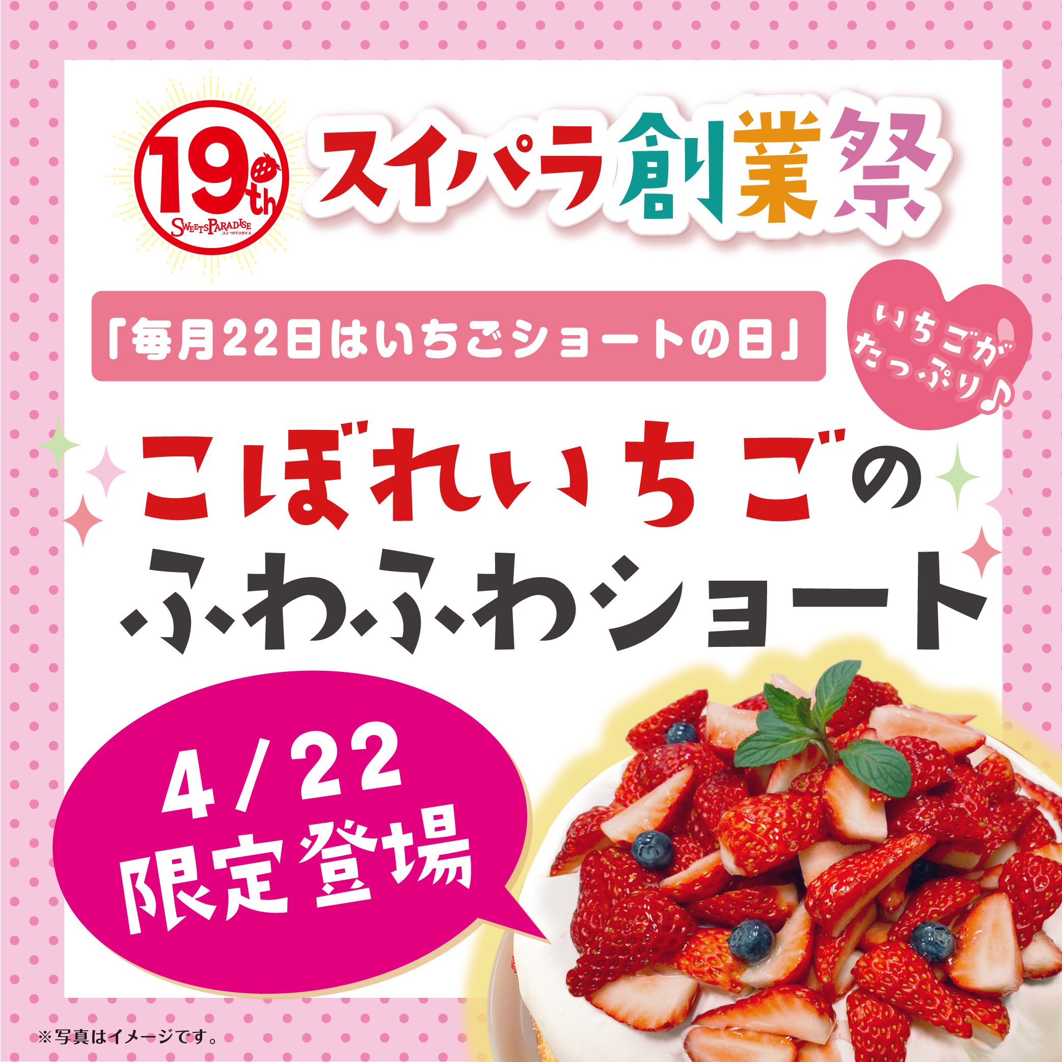 毎月22日はいちごショートの日!4月22日限定ふわふわショートのいちごが大増量!