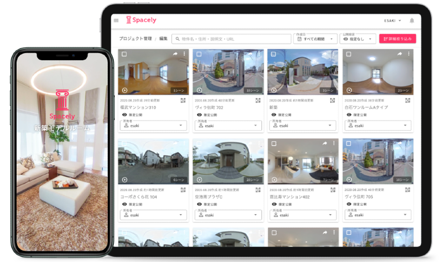 空間データ活用プラットフォーム「スペースリー」は、2016年11月の開始以来、不動産・ハウスメーカーの営業活動や製造業の研修分野のDX推進のために7,000以上の利用事業者にサービス提供されています。リーズナブルな価格、直感的な操作で、ウェブブラウザで再生可能な高品質のパノラマVRコンテンツを制作・編集・管理、活用までが一括してできるクラウドソフトです。