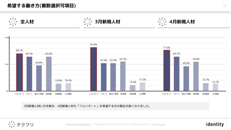 - 引き続き、「フルリモート」を希望する方の割合が高くなっています。