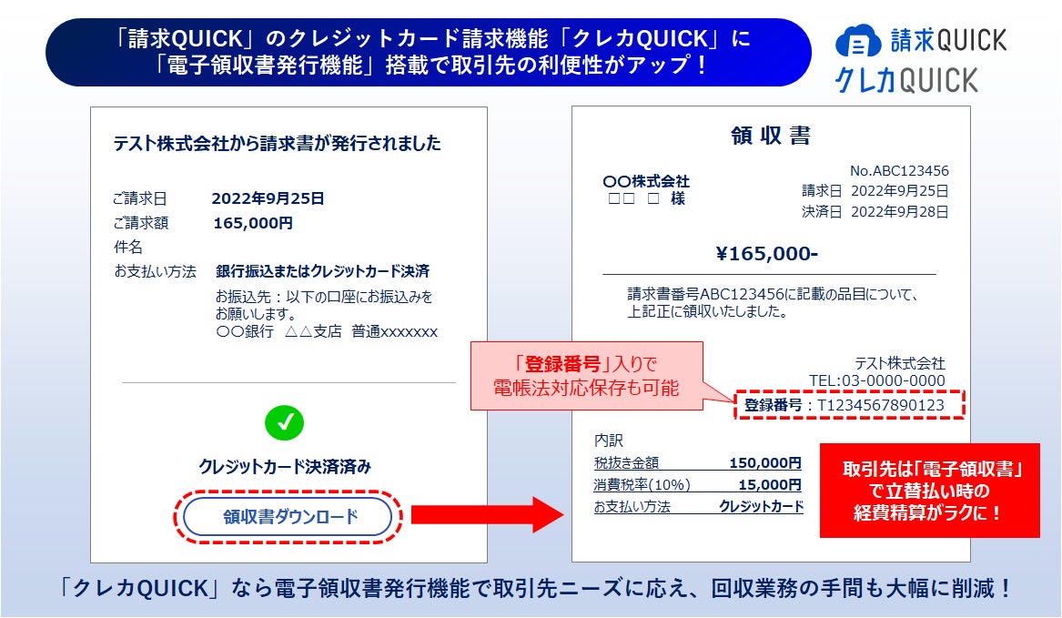 「請求QUICK」のクレジットカード請求機能「クレカQUICK」に「電子領収書発行機能」を搭載!