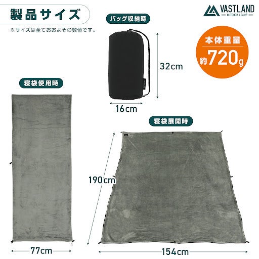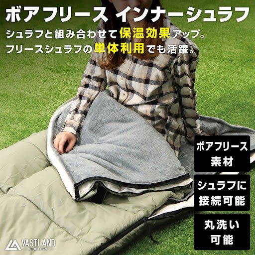 キャンプギアブランド「VASTLAND」、シュラフと組み合わせて保温効果アップが狙え、フリースシュラフの単体利用でも活躍する「ボアフリースインナーシュラフ」を2023/11/4(土)に発売