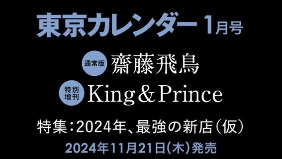 【速報】東カレ1月号の特集は「2024年、最強の新店」!通常版は齋藤飛鳥、特別増刊はKing & Princeが表紙を飾る
