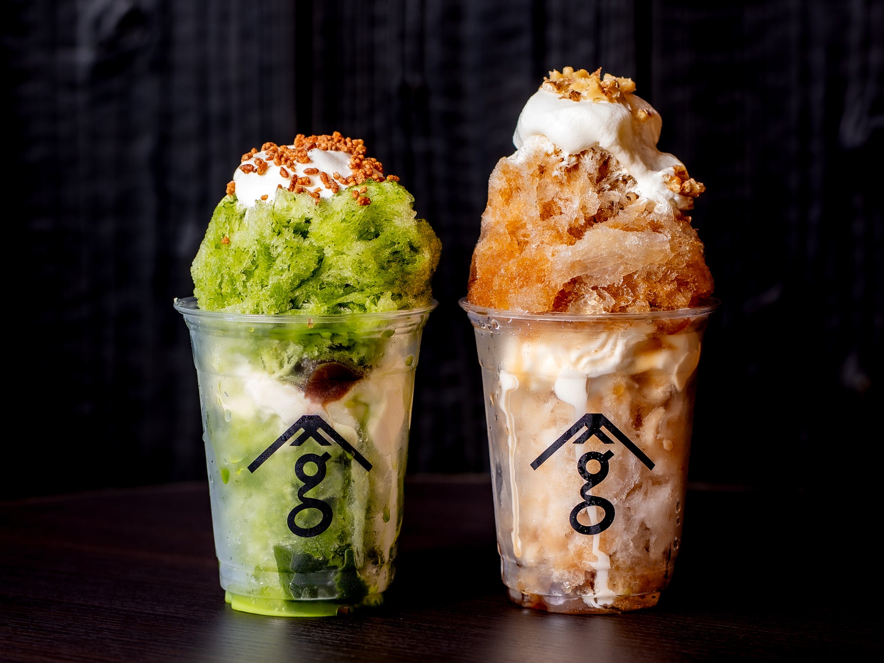 ゆずのプチプチ食感が楽しめる、ミルク抹茶×ゆずジェラートと、あんこと生クリームのマリアージュを楽しめる濃厚抹茶氷です。
