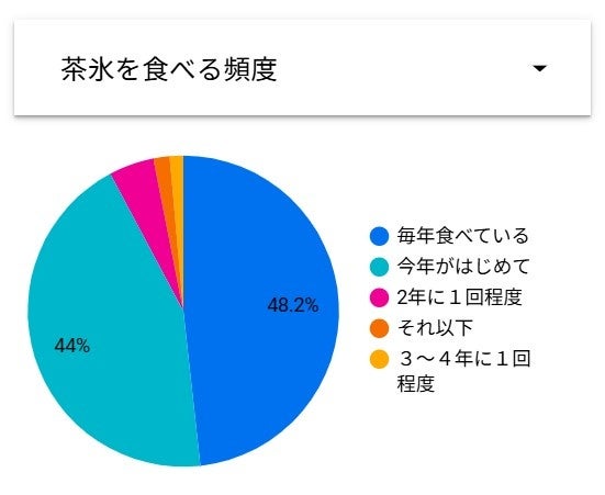 昨年実施した茶氷購入者へのアンケート調査では、回答者の約7割が茶氷を目的に外出していること、県外からも茶氷目当てで足を運ぶ方が一定数いることが明らかとなり、地域の枠を超えた広がりが見られます。さらに、回答者の約半数が「毎年食べている」と回答しており、茶氷が地元に根付いて高い満足を得ていることが裏付けられました。今後も静岡の夏の風物詩として、多くの方に親しまれていくことが期待されます。