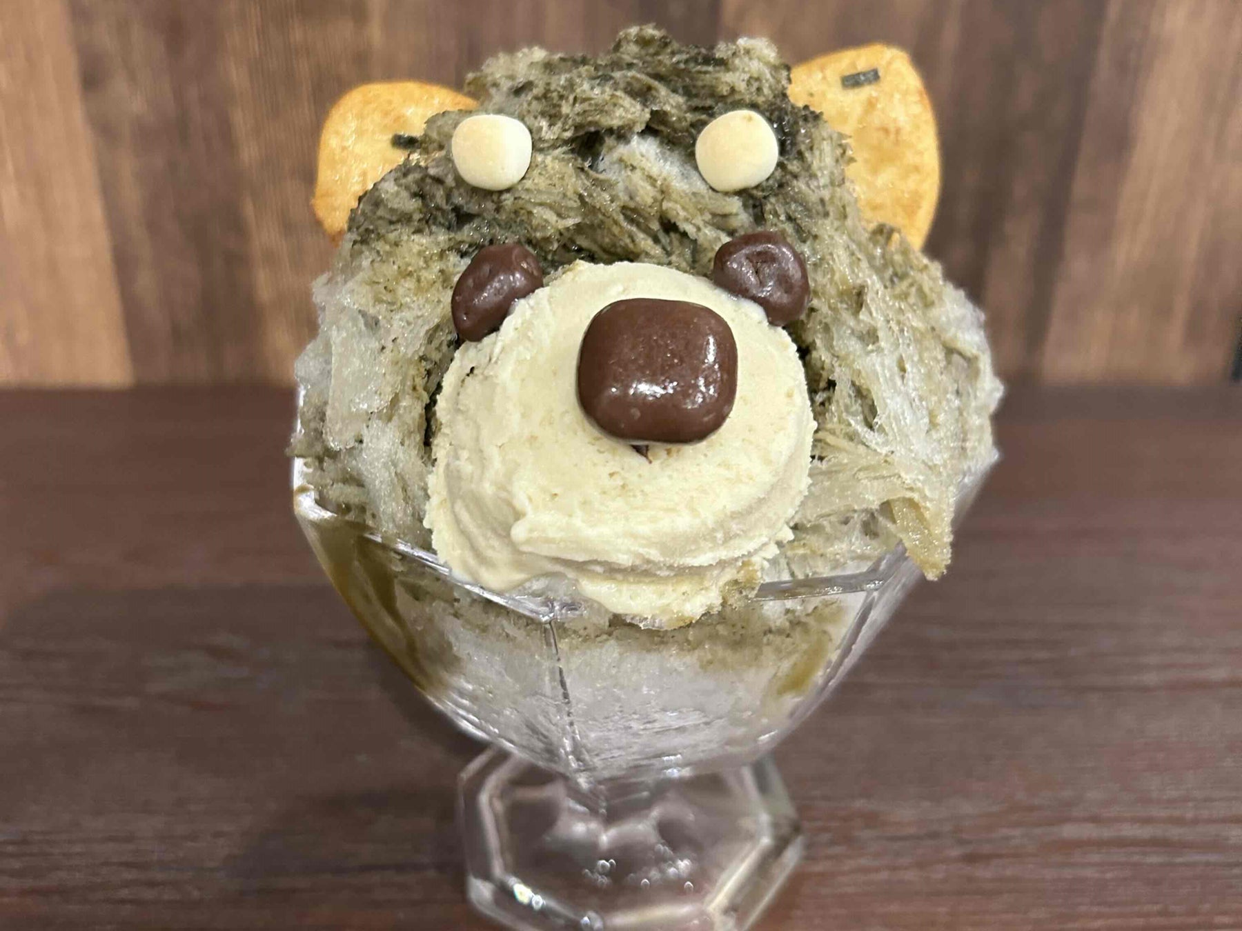 川根茶の焙じ茶で作る手作りシロップは、香り高く深みのある味わいです。柴犬の鼻の部分には、川根本町産の焼き芋のジェラートをトッピングしました。ふわふわのかき氷とまろやかなジェラートをお楽しみください。