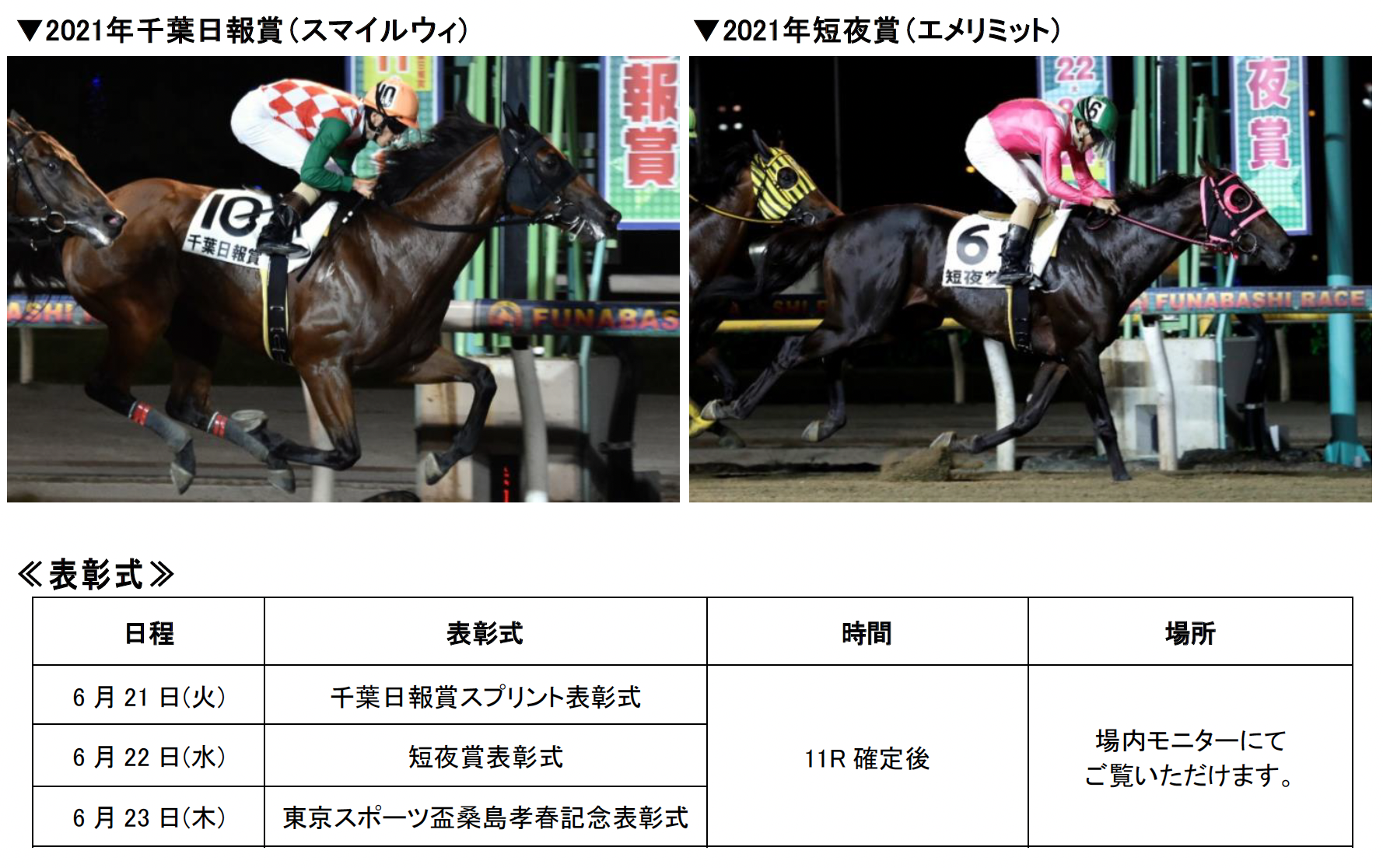 開催日時:6月21日(火)千葉日報賞スプリント、6月22日(水)短夜賞