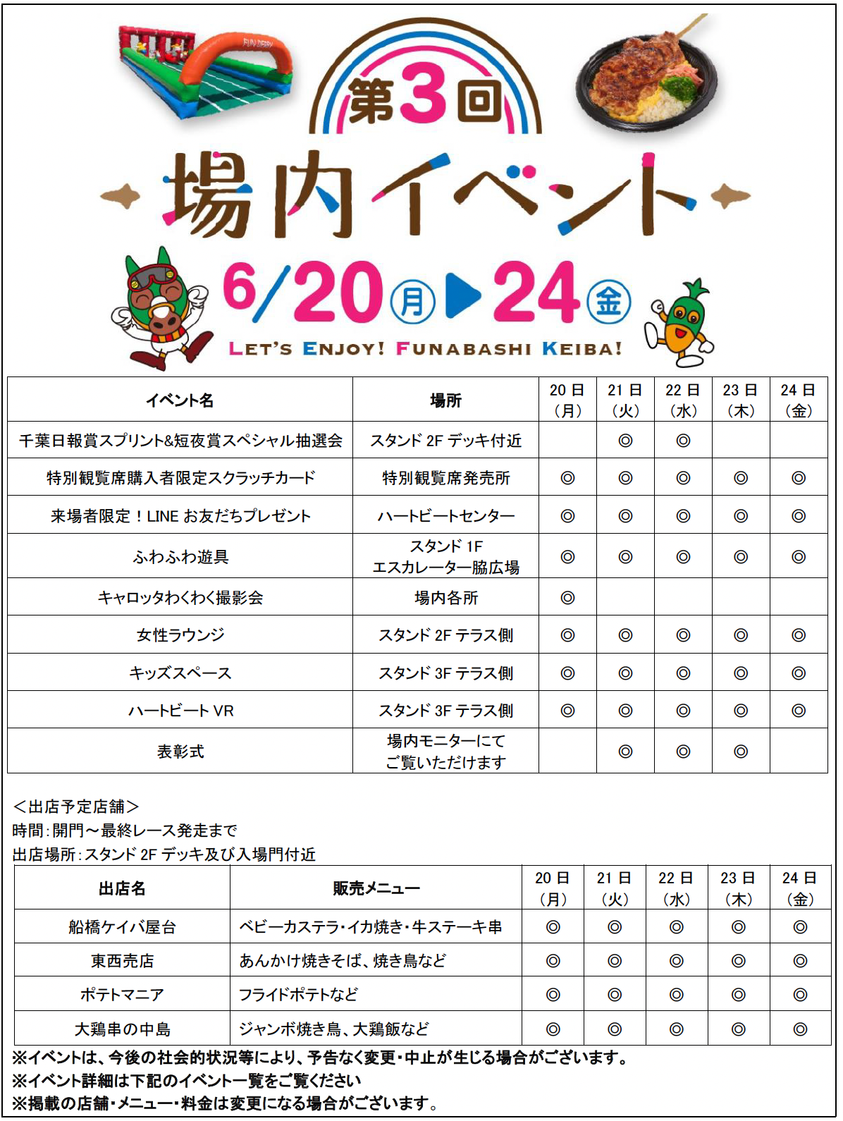 開催日時:6月20日(月)〜6月24日 船橋競馬全レース