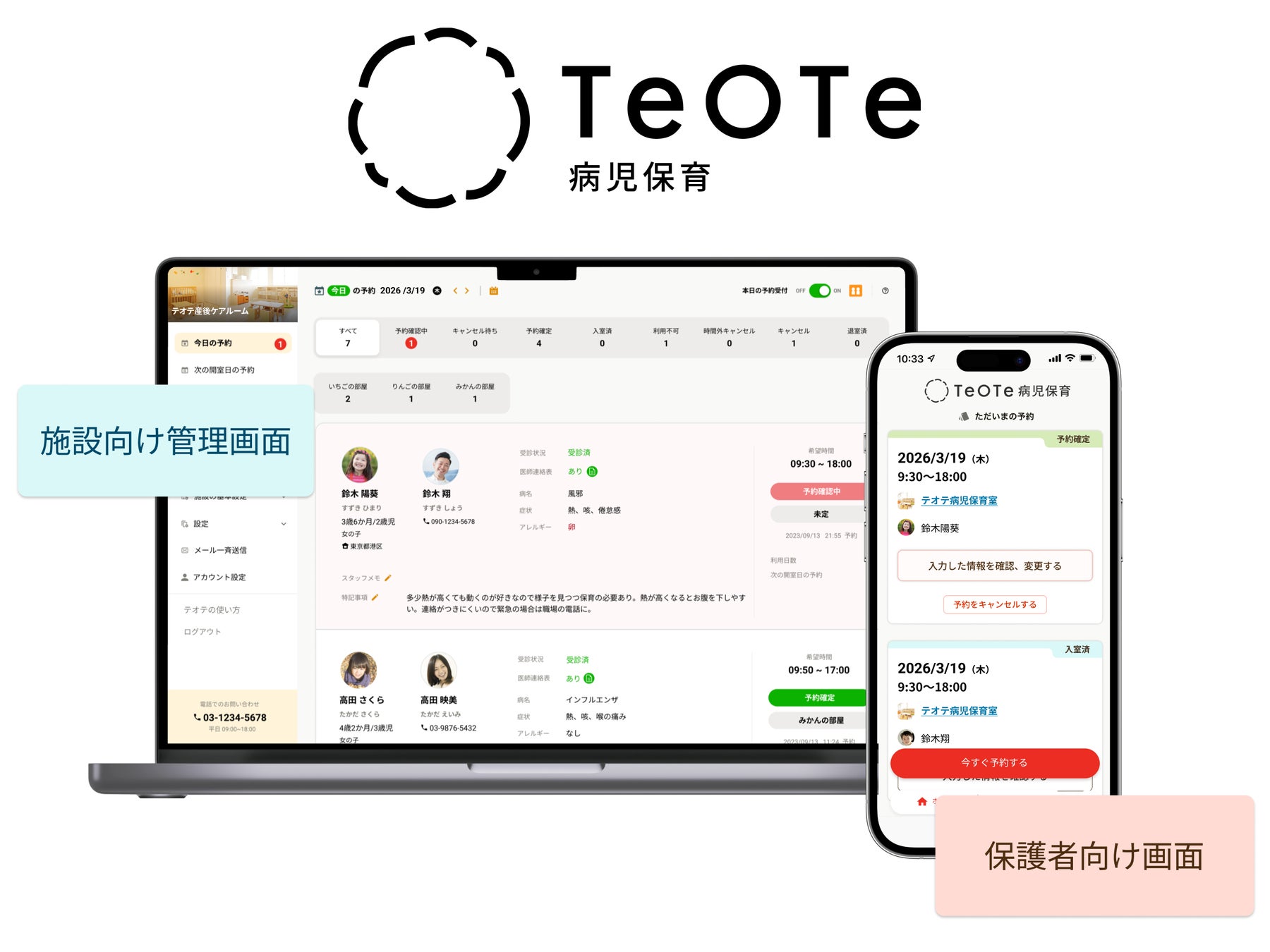 病児保育、産後ケア予約の「あずかるこちゃん」、2026年4月より「テオテ」に名称を変更