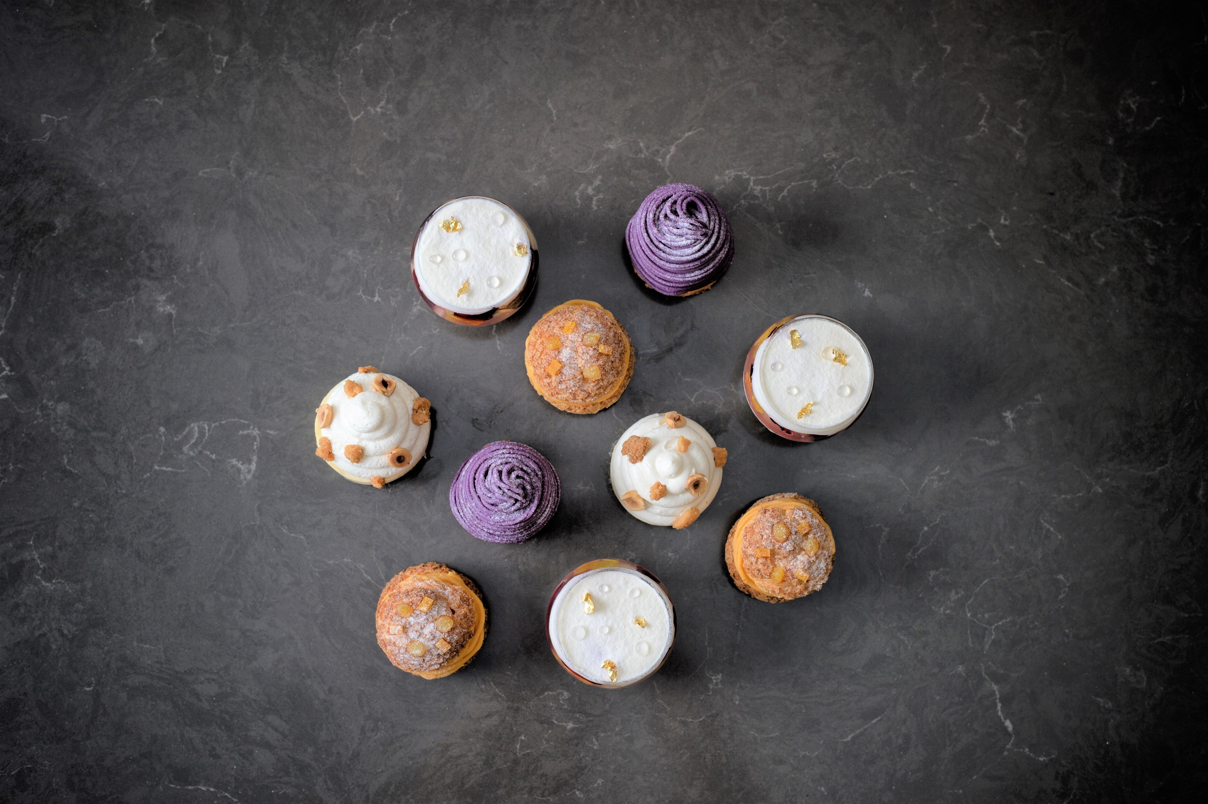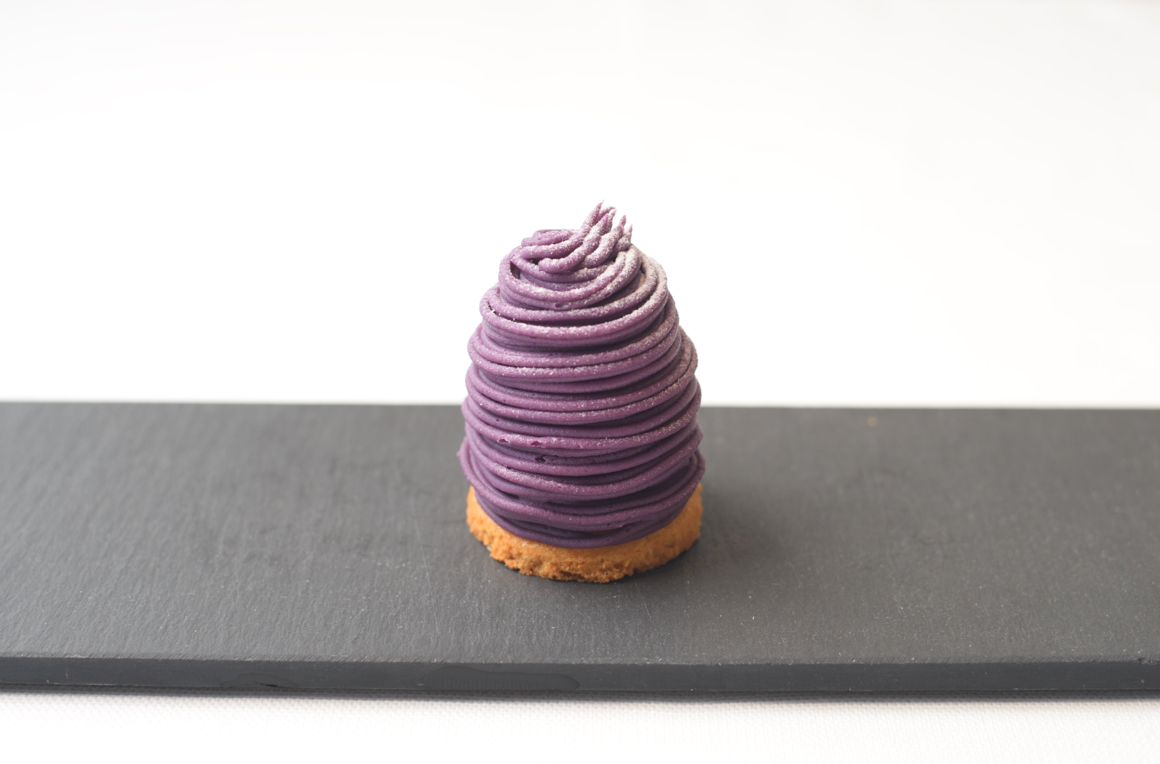 沖縄の島の恵みをふんだんに受けた紅芋を使用したモンブラン。大きくカットした紅芋とガレット、メレンゲを閉じ込め、全ての食材がないと完成しないこだわりのモンブランに仕上げ、紅芋本来の自然な甘さが合わさった絶妙なハーモニーをご堪能ください。