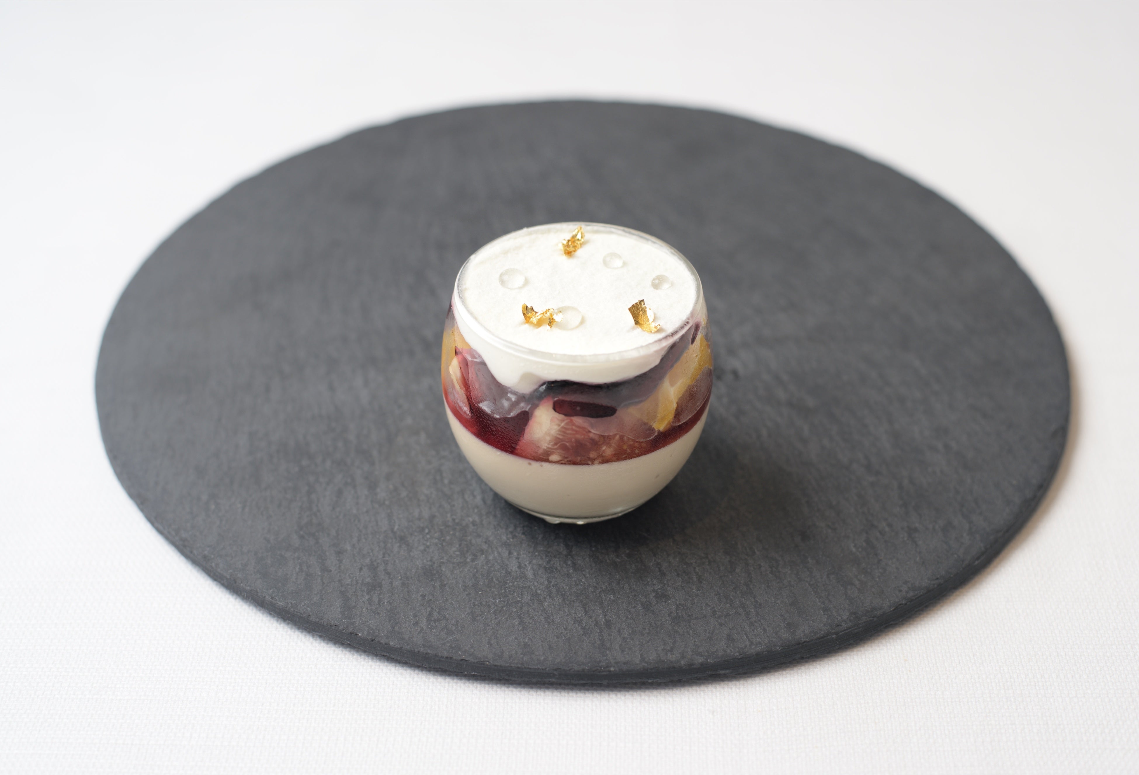 芳醇なアッサムティーのパンナコッタをベースに、フレーバードワインの一種であるサングリアのゼリーをブレンド。旬のイチジクとオレンジの果肉をトッピングし、それぞれの香りと味わいを生かしたとっておきのマリアージュをお楽しみいただける一品です。