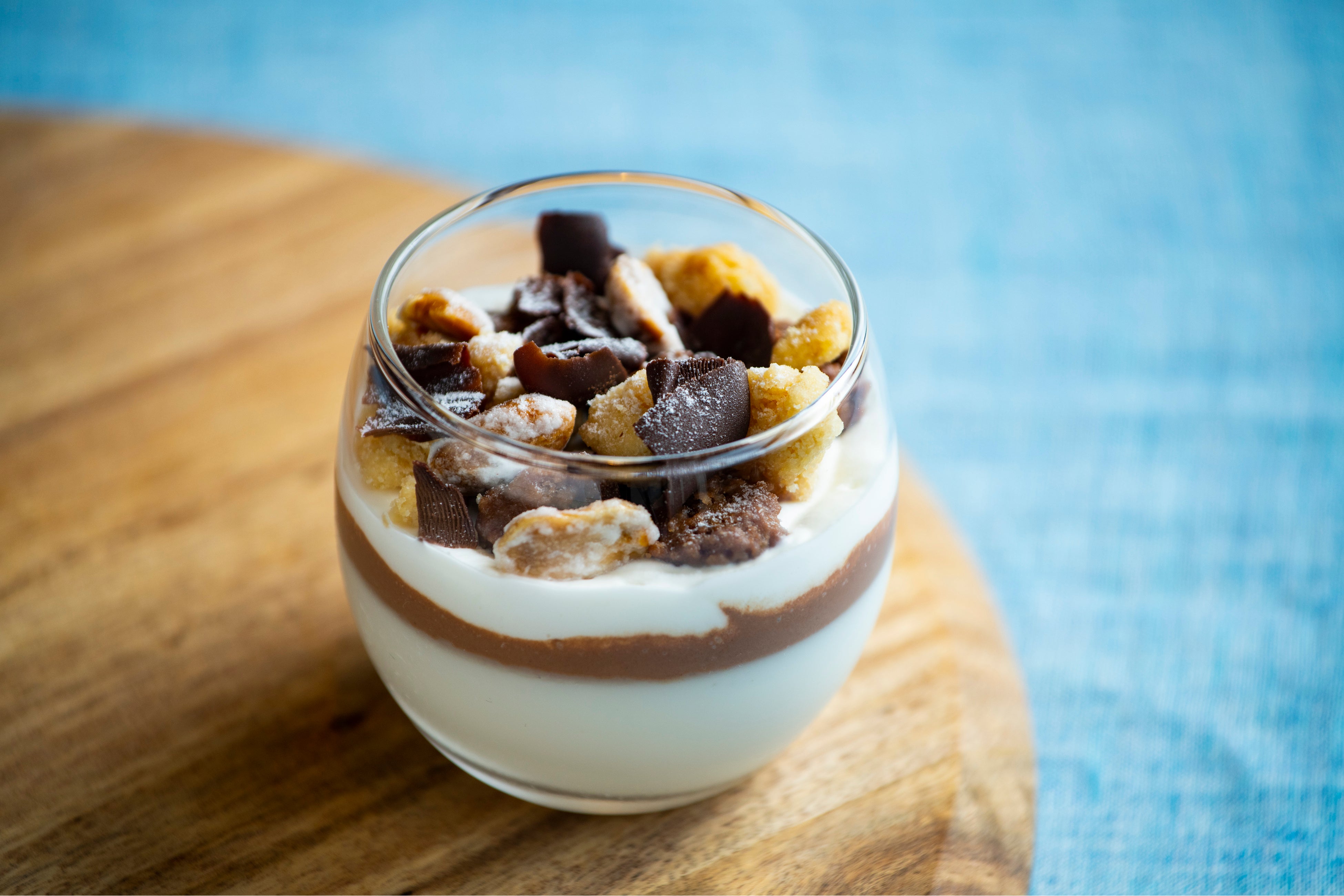 沖縄料理でもおなじみのジーマーミー豆腐の原料である「ピーナッツ」をアレンジしたユニークな一品です。もっちりした触感のジーマーミーに、ナッツとショコラを加えてビターな味わいと歯ごたえのある触感を加え、大人の味に仕上げております。2021年7月に発売して以来今もなお、ご好評いただいており、リピート率NO1の一品です。