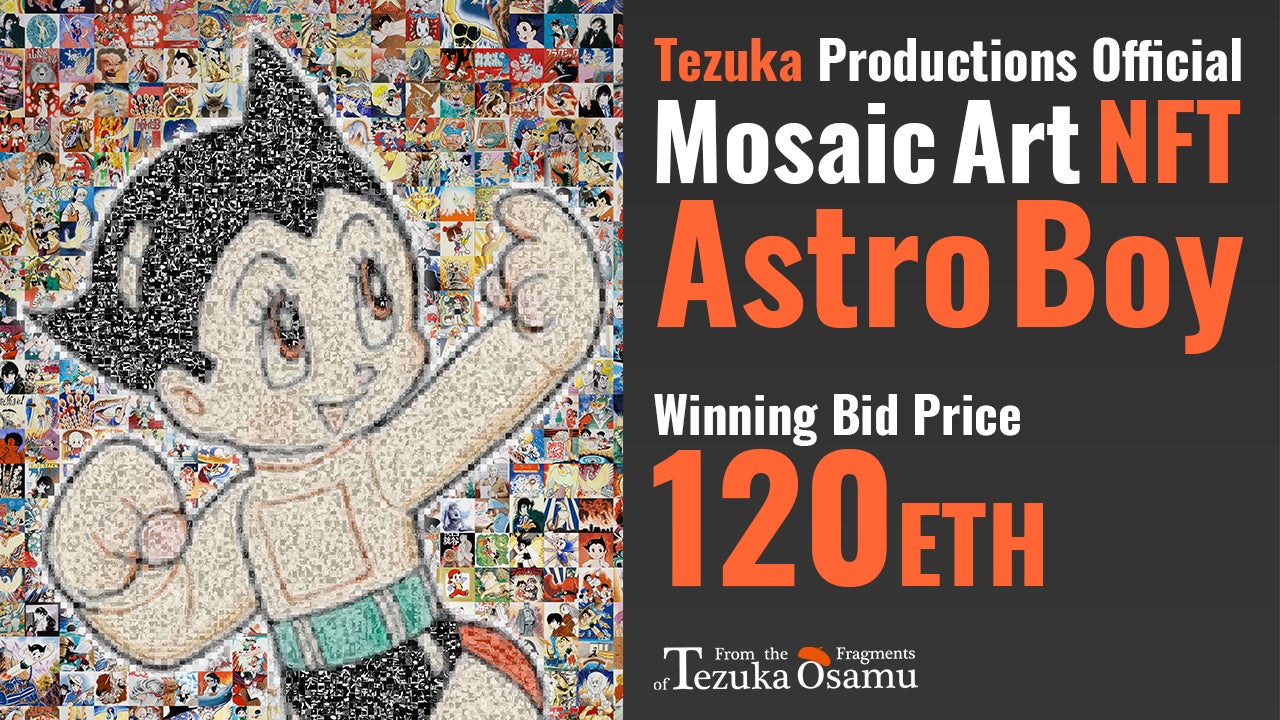 手塚プロダクション初のデジタルアートNFT「鉄腕アトム」が120ETH(約5300万円)で落札!