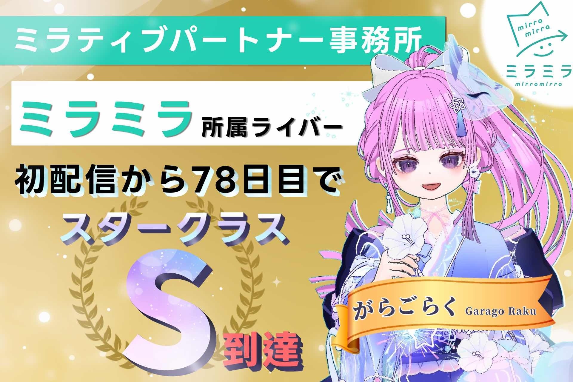 ミラティブパートナー事務所「ミラミラ」所属ライバー「がらご らく」配信初心者からのスタートで初配信より78日目でスタークラスS到達!