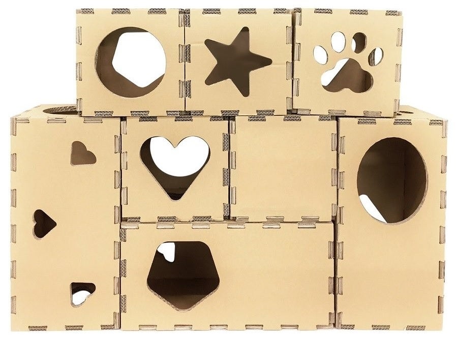 【安心の国産段ボール】強化段ボール素材で非常に強く耐久性があり丈夫で長持ち、汚れたパーツだけ捨てることも出来ます。ダンボール製なので環境にもやさしくリサイクル可能、大切な家具や壁のキズ防止にもなります。窓の形やタワーの組み合わせは沢山あるので、入れそうで入れなかったり、トンネルをくぐり抜けたりと猫ちゃんの好奇心をあおります!遊び場、リラックスする寝床としていろいろ使えます。またダンボール製のため、文字やイラストなどを書いたり、マスキングテープなどで飾り付けたりして、愛猫のためアレンジも楽しめます。