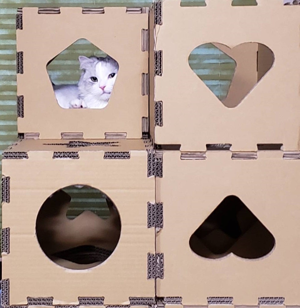 【猫が飽きたら組み替えて】自由に組み替えてあっという間に新しいタワーに!猫ちゃんたちは夢中になること間違いなし。 運動不足とストレス解消になります。