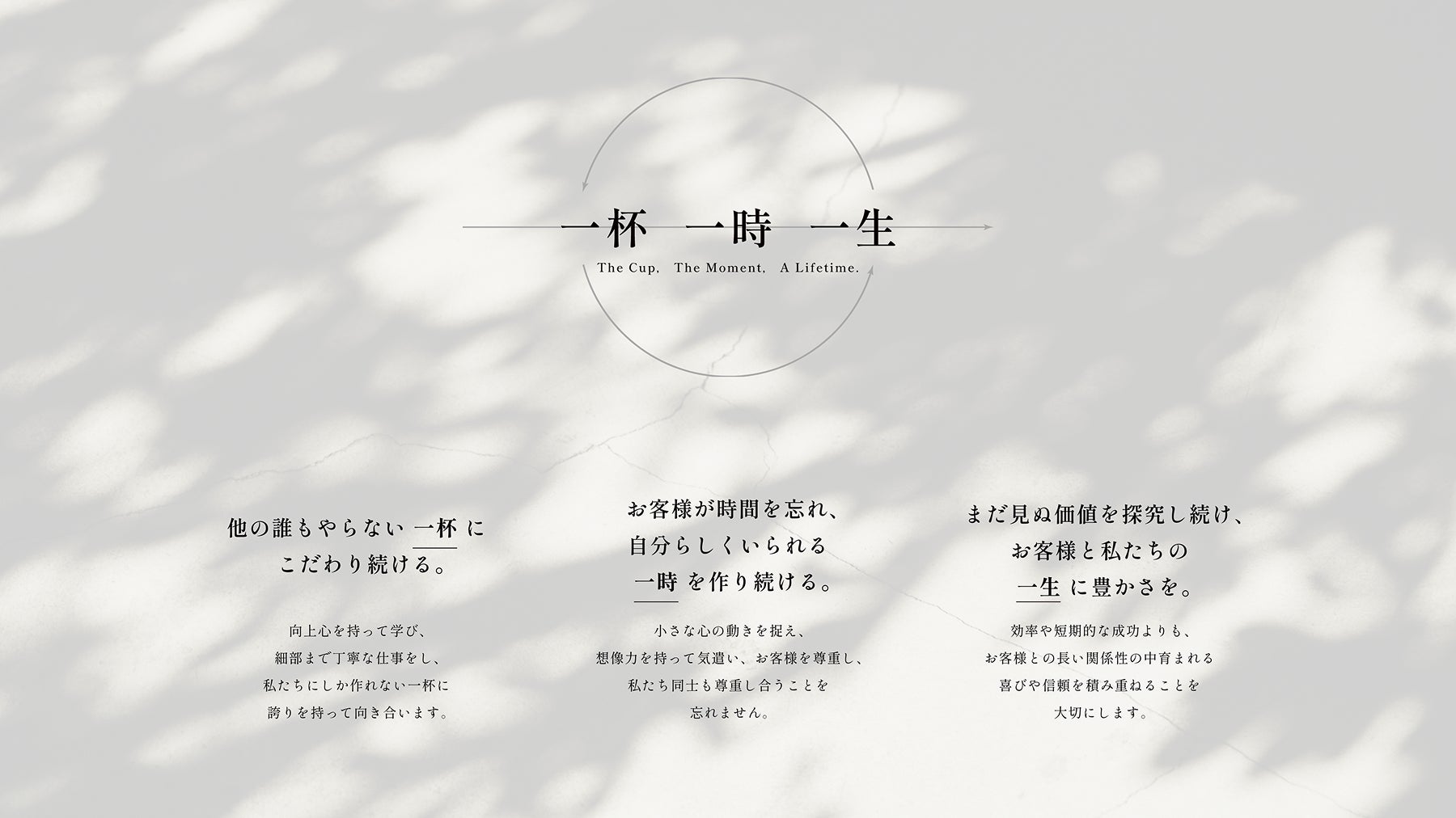 上島珈琲店のスタッフが共通して持つべき価値観を明文化したものであり、日々の行動の基礎となるものです。