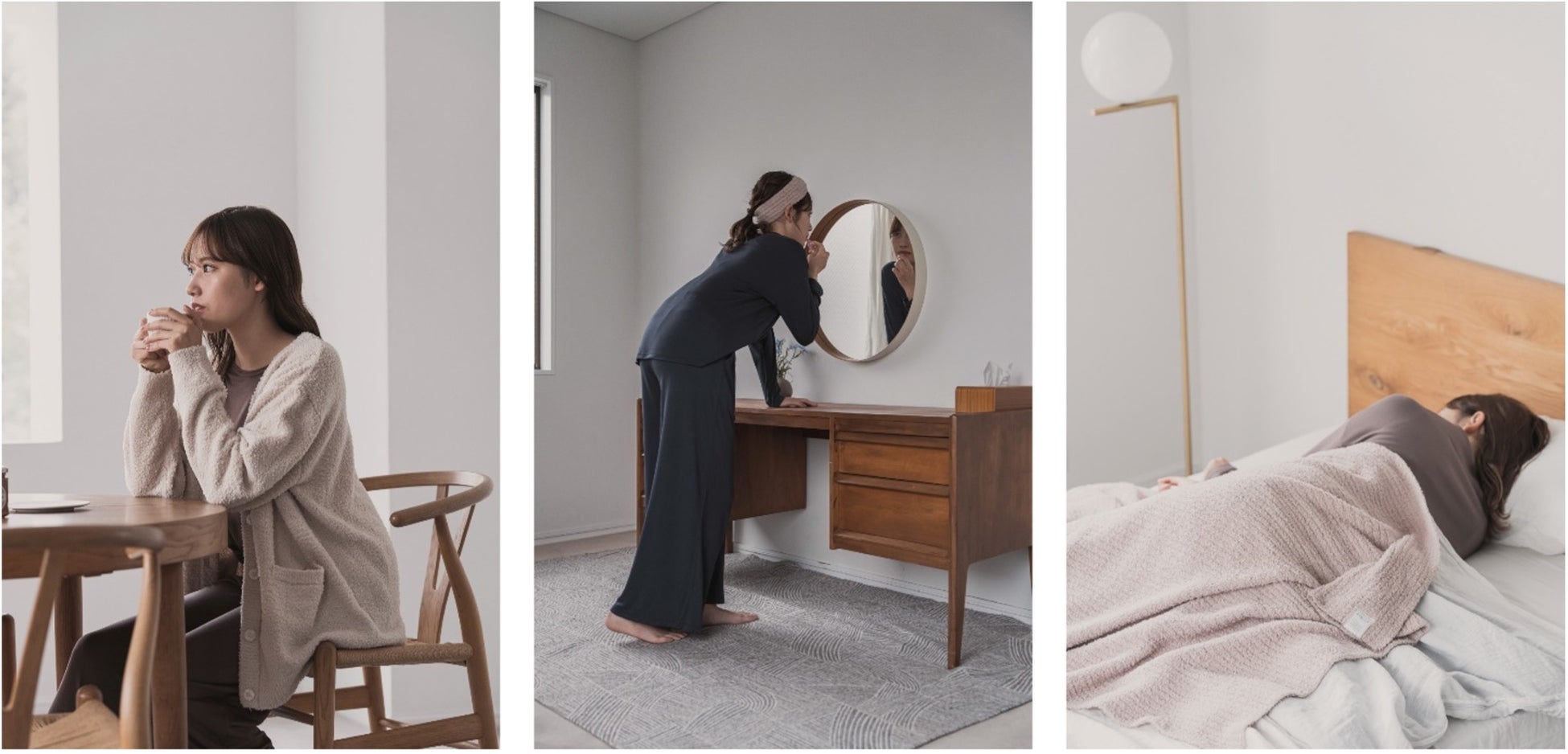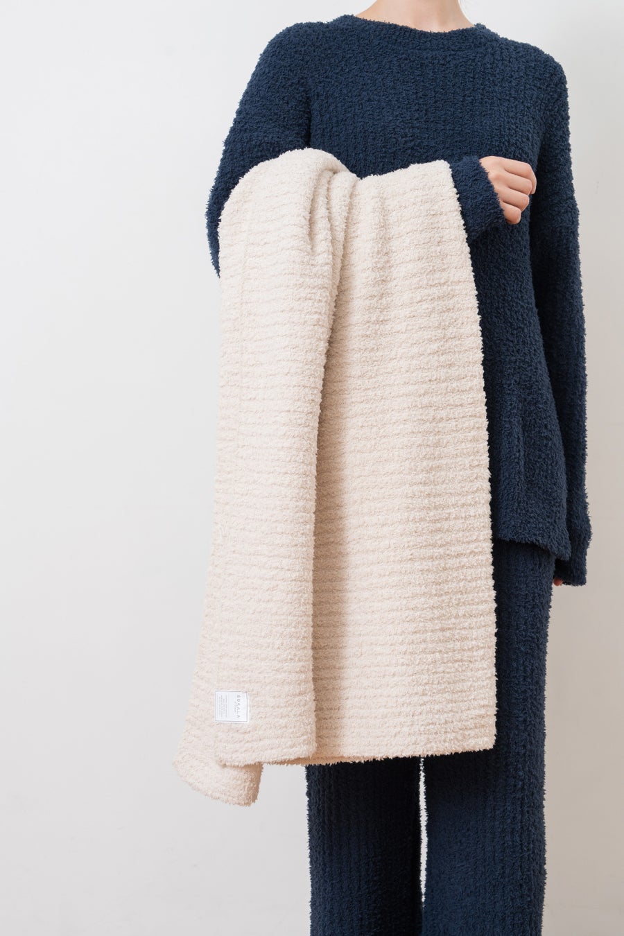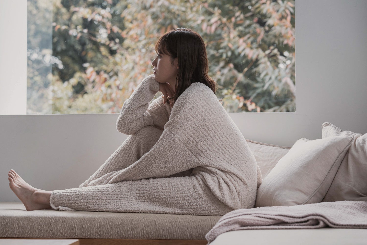アイテムはプルオーバーやジョガーパンツ、ユニセックスで着ることができるセットアップなど、パジャマやルームウエアに最適なアイテムをメインに展開。他にも、カーディガンやオールインワンなど、近所のおでかけに気軽に使えるアイテムや、パジャマとお揃いで使えるカラーバリエーションのネックウォーマーやブランケットなどの小物アイテムも取り揃えています。