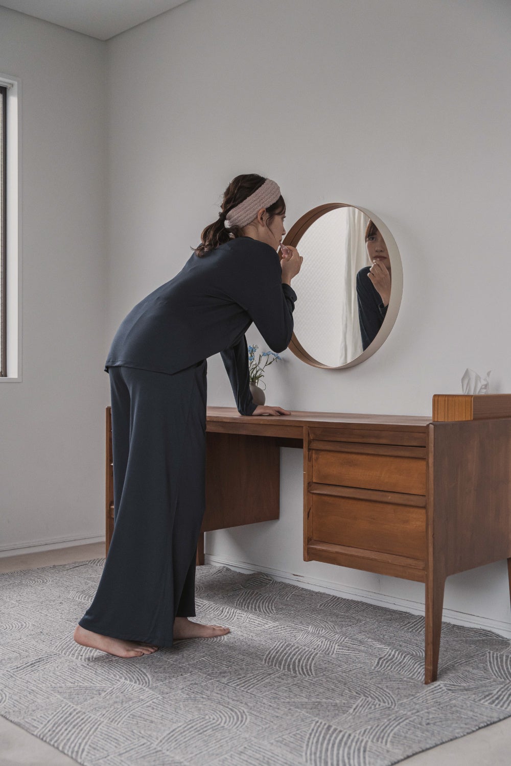 そこで、LAVAの企業理念にもある「Make everyone happy through yoga(ヨガでひとりでも多くの人を幸せに)」を実現するために、ヨガをする時間だけでなく、おうちでの休息時間や睡眠時間もサポートできる商品の開発を開始。1日の中で過ごす時間に長く寄り添うことで、より健康的で穏やかな生活を送ってほしいという願いのもと、ルームアイテムブランドとして「SUKALA HOME」を誕生させました。取り扱いは、ルームウエアからブランケットまで幅広く、ヨガウエア開発のノウハウに加え、体温を利用して保温する特殊な機能素材を取り入れた豊富なラインナップになっています。