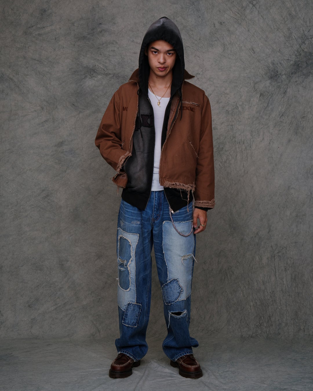 第1弾となる2024年秋冬シーズンは、ヴィンテージ調のサンフェード加工をあしらったセットアップや、袖や裾にボロ加工を施したワークジャケット、ウォッシュ加工の後付けフーディーなどヴィンテージ風にリバイバルしたデザインを展開。