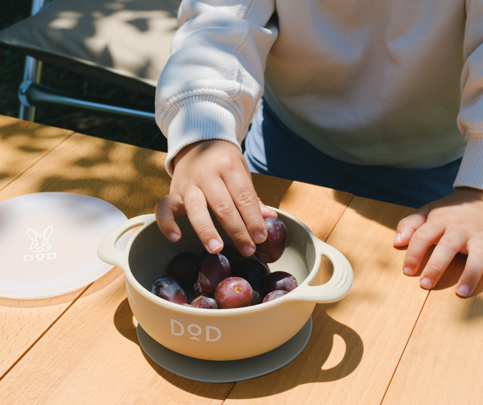 探すと中々見つからないアウトドアシーンでも便利な蓋付きボウル!ちょっと目を離した隙に落ち葉が!なんて時も蓋を閉めていればへっちゃらです。食洗機可能でお手入れ簡単、衛生的に使えます。裏面には吸盤付きでひっくり返し防止に。